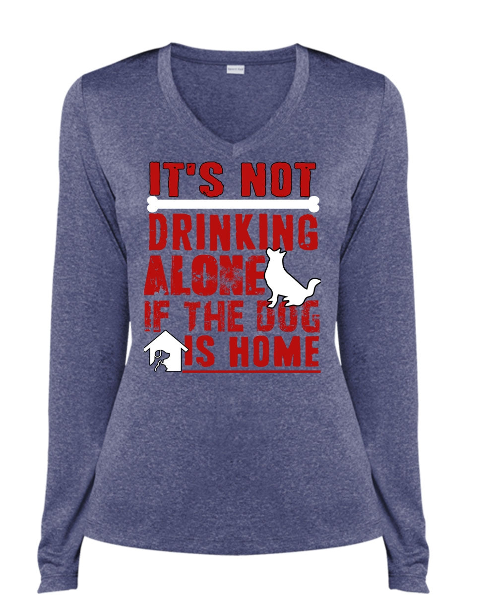 It's Not Drinking Alone T Shirt, If The Dog Is Home T Shirt, Cool Shirt (Ladies LS Heather V-Neck)