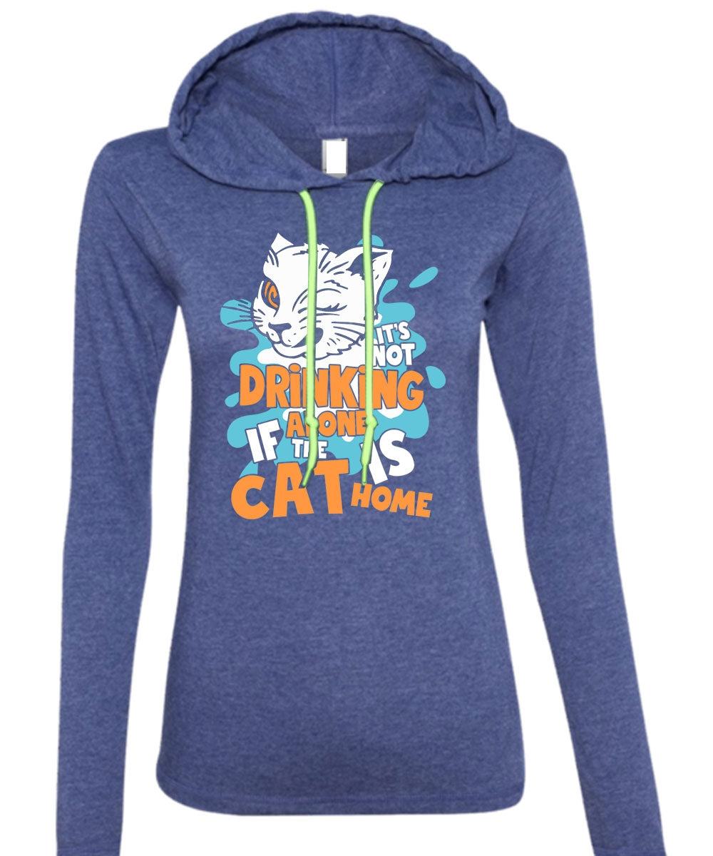 It's Not Drinking Alone T Shirt, The Cat Is Home T Shirt (Anvil Ladies Ringspun Hooded)
