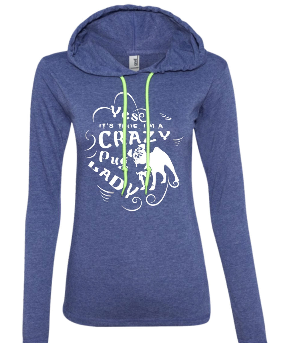 It's True I'm A Crazy Pug Lady T Shirt, I Love My Dog T Shirt (Anvil Ladies Ringspun Hooded)