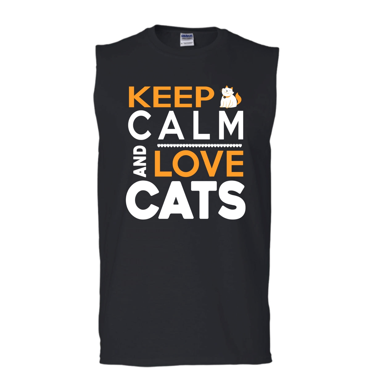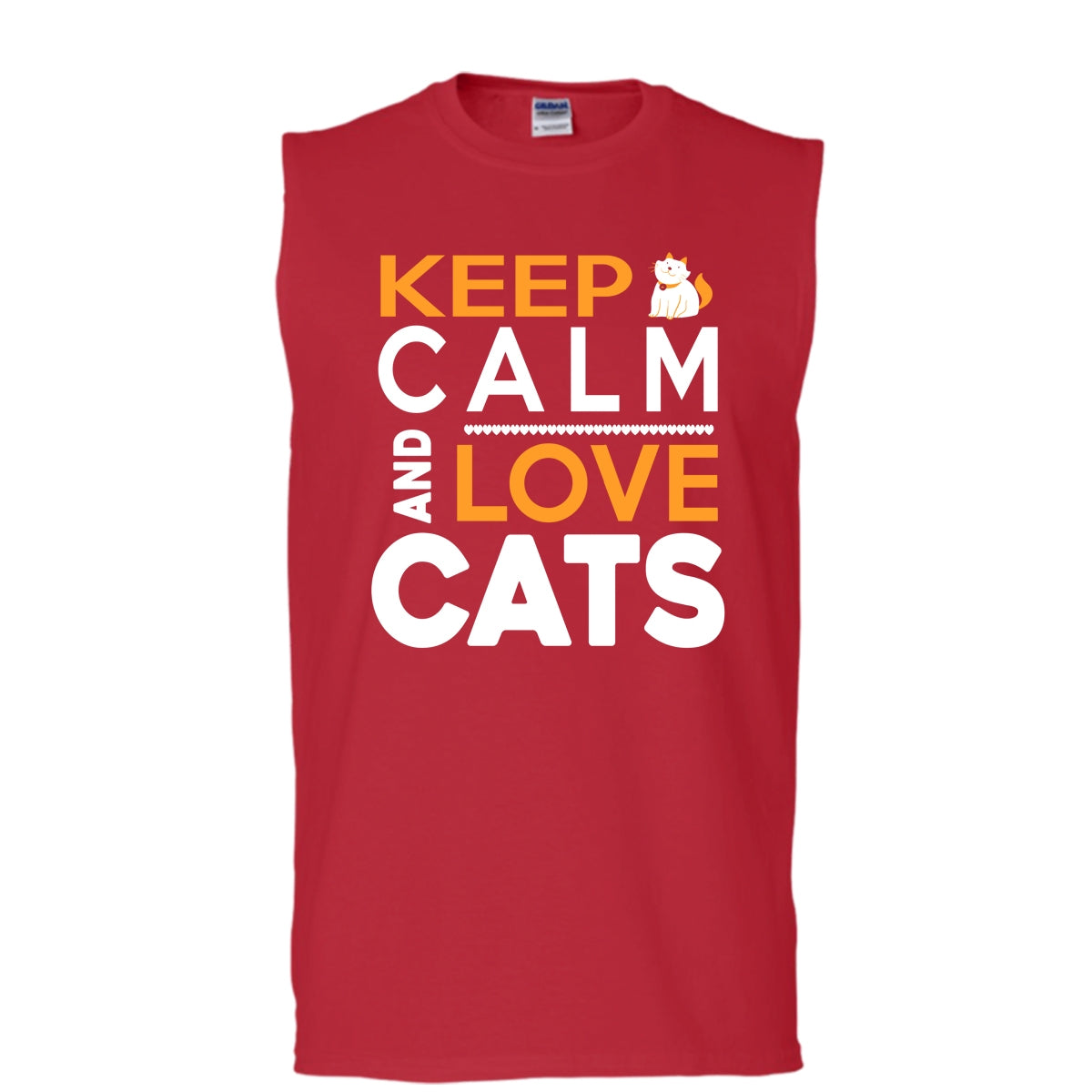 Keep Calm And Love Cat Shirt, Cool Cat Shirt (Men's Cotton Sleeveless)