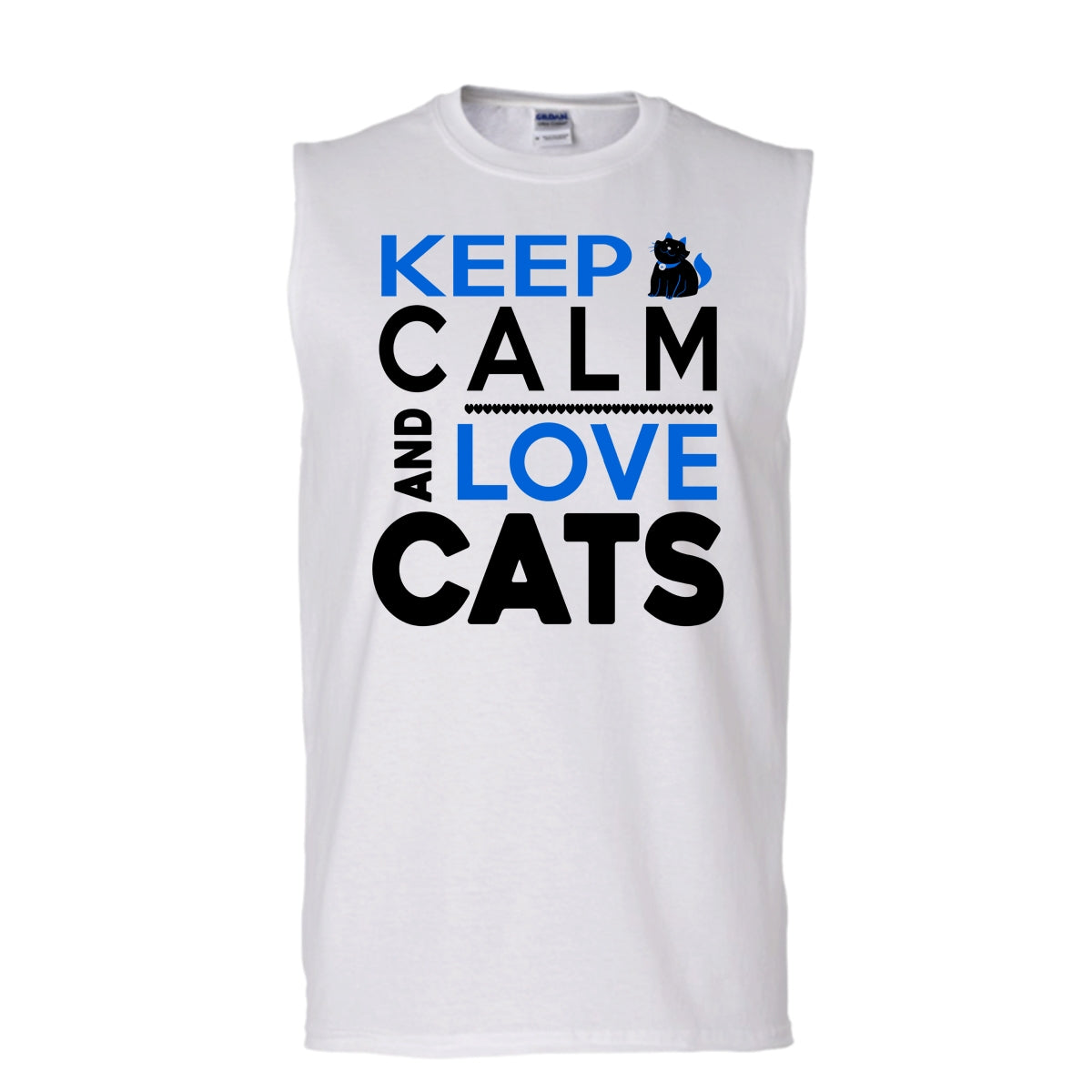 Keep Calm And Love Cat Shirt, I Love Cat Shirt (Men's Cotton Sleeveless)