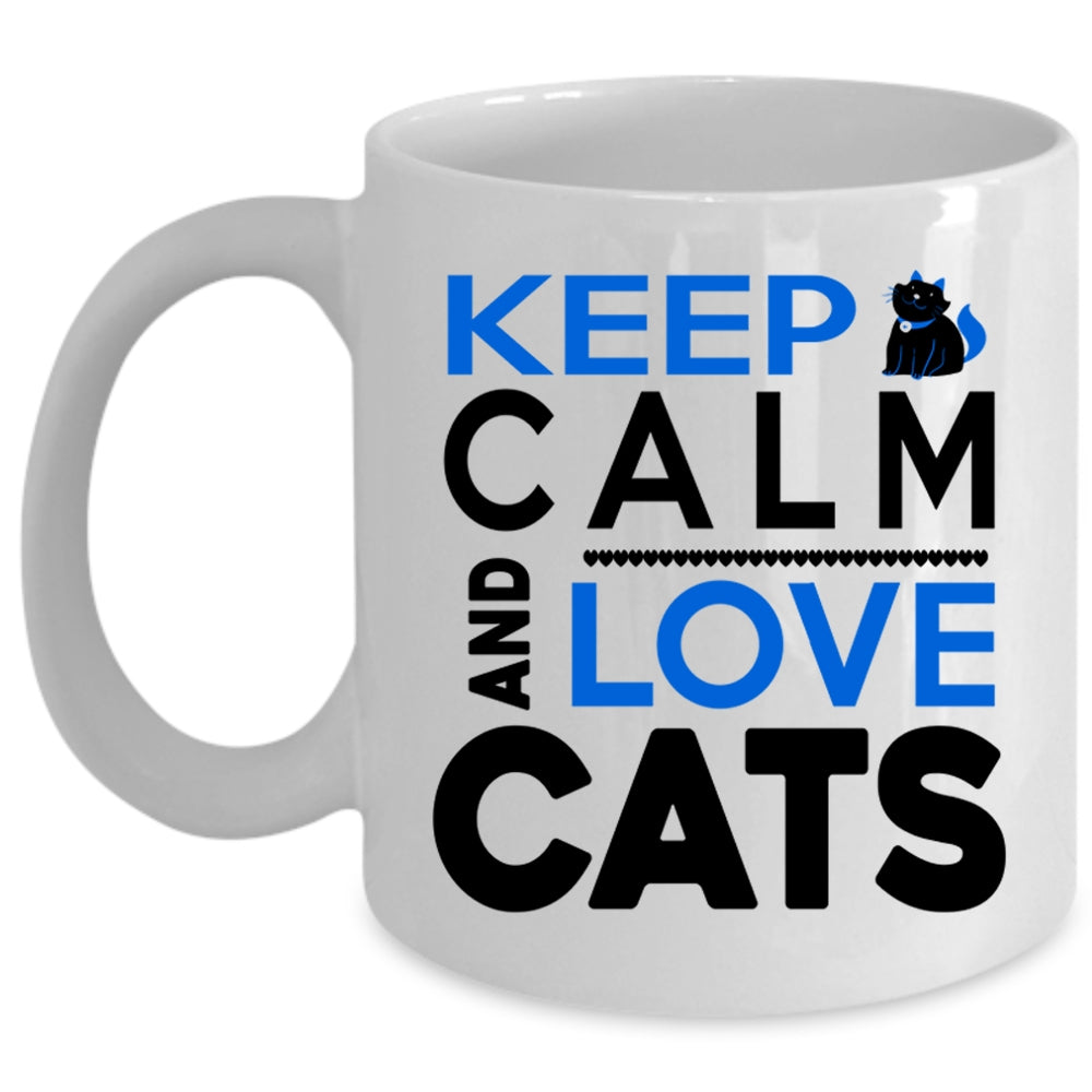 Keep Calm And Love Cats Cup, I Love Pets Mug (Coffee Mug - White)