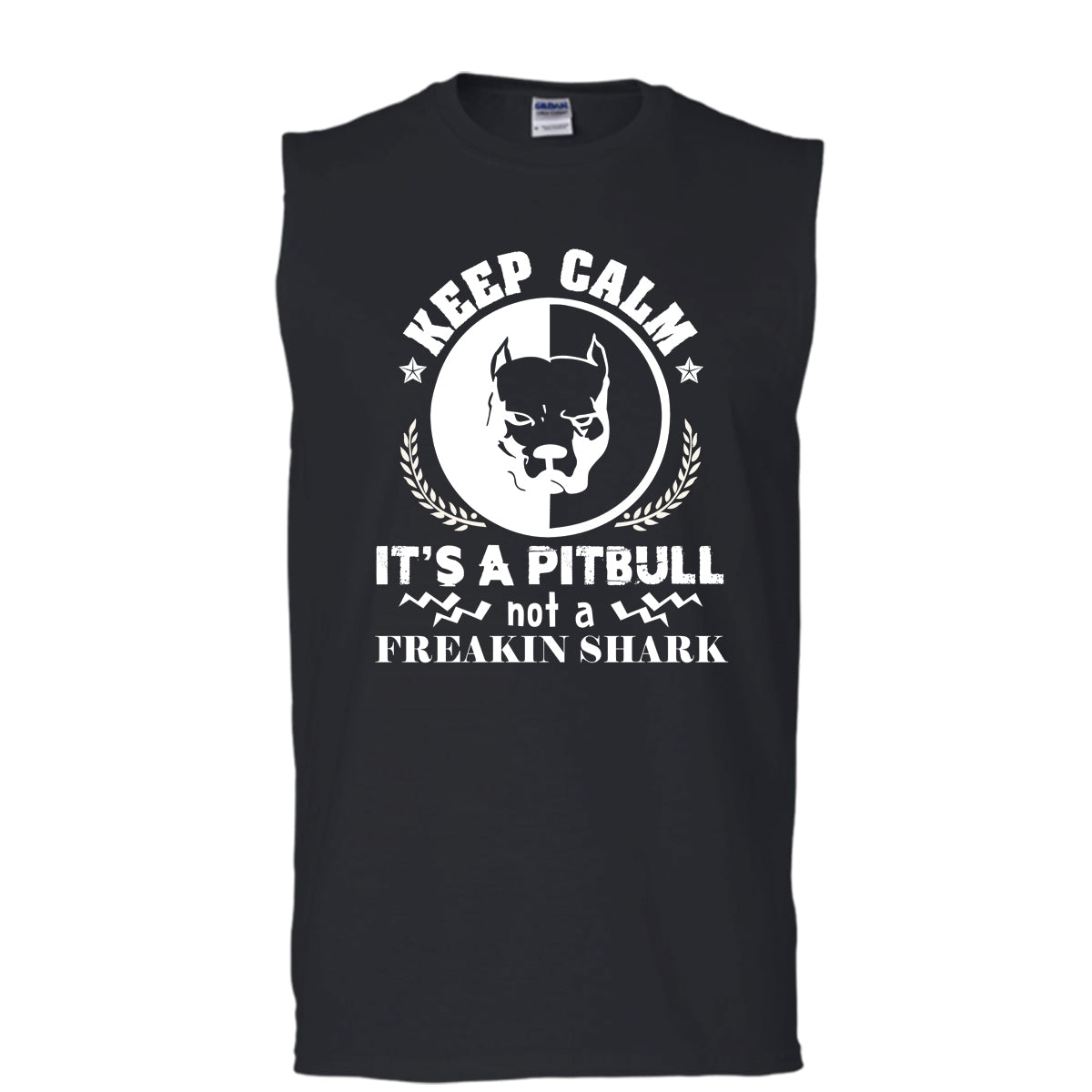 Keep Calm It's A Pitbull Not A Freaking Shark Shirt, Cool Dog Shirt (Men's Cotton Sleeveless)