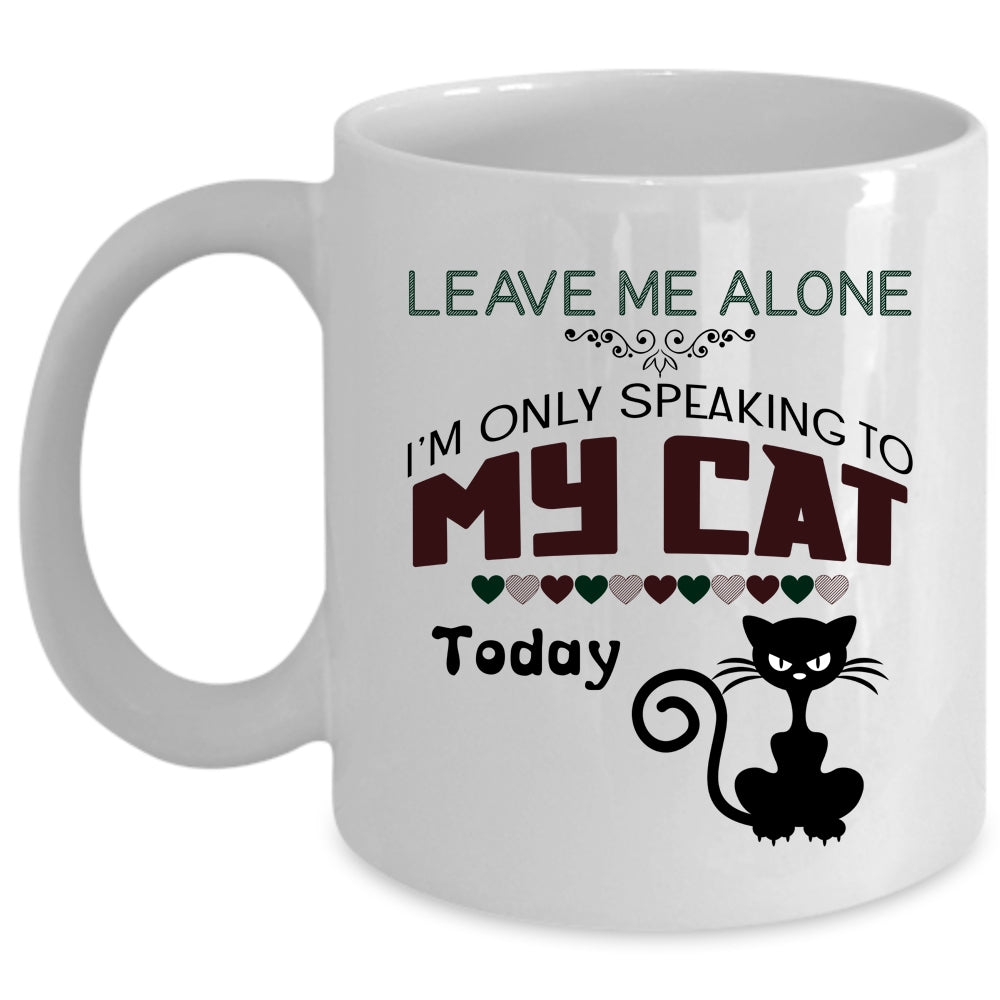 Leave Me Alone Mug, I'm Only Speaking To My Cat Cup (Coffee Mug - White)