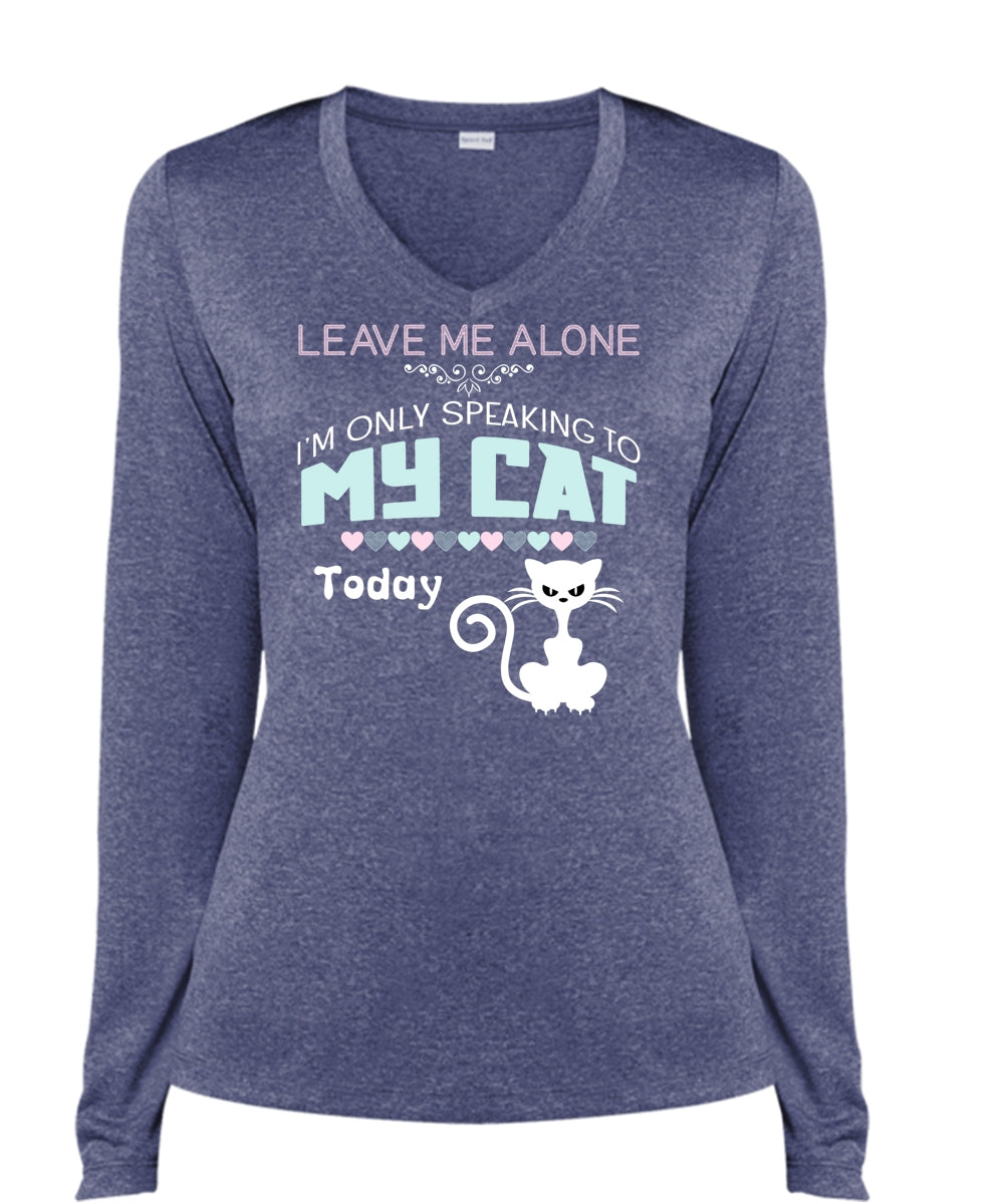 Leave Me Alone T Shirt, I'm Only Speaking To My Cat Today T Shirt (Ladies LS Heather V-Neck)