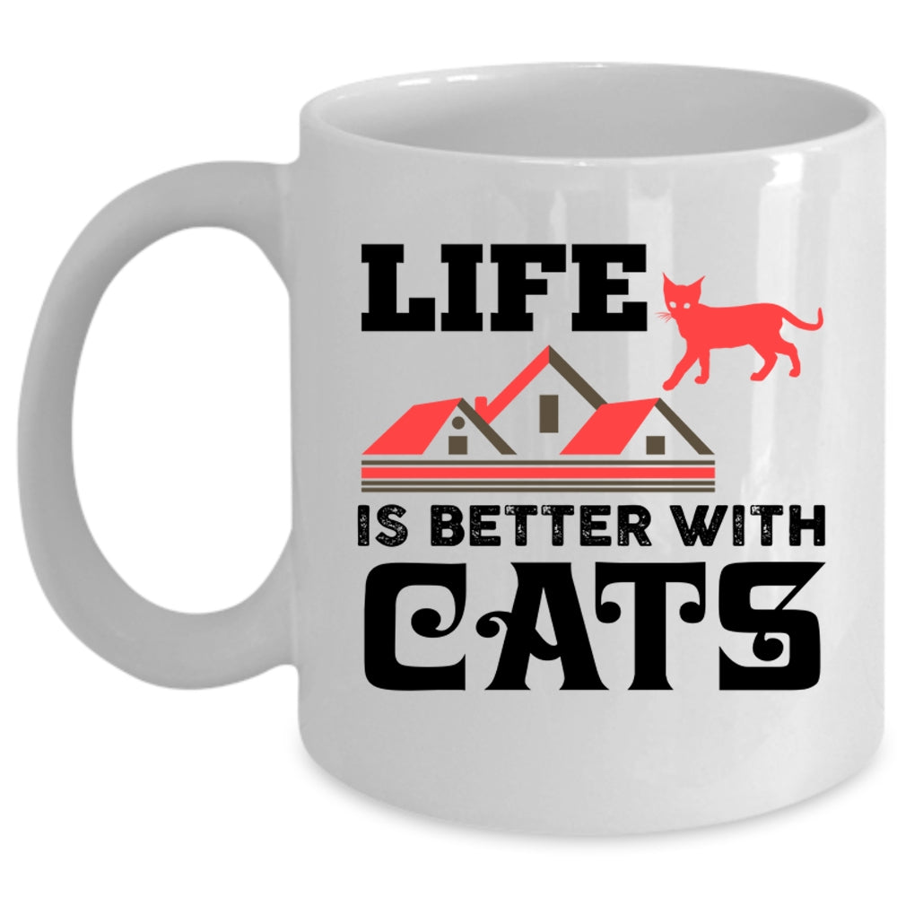 Life Is Better With Cats Cup, Lovely Cats Mug (Coffee Mug - White)