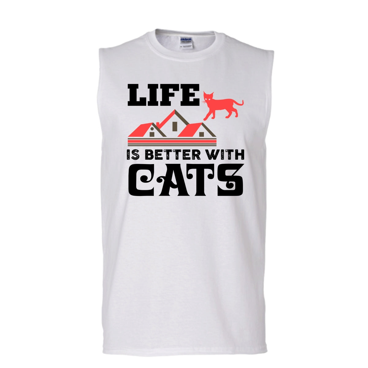 Life Is Better With Cats Shirt, I Love My Cat Shirt (Men's Cotton Sleeveless)