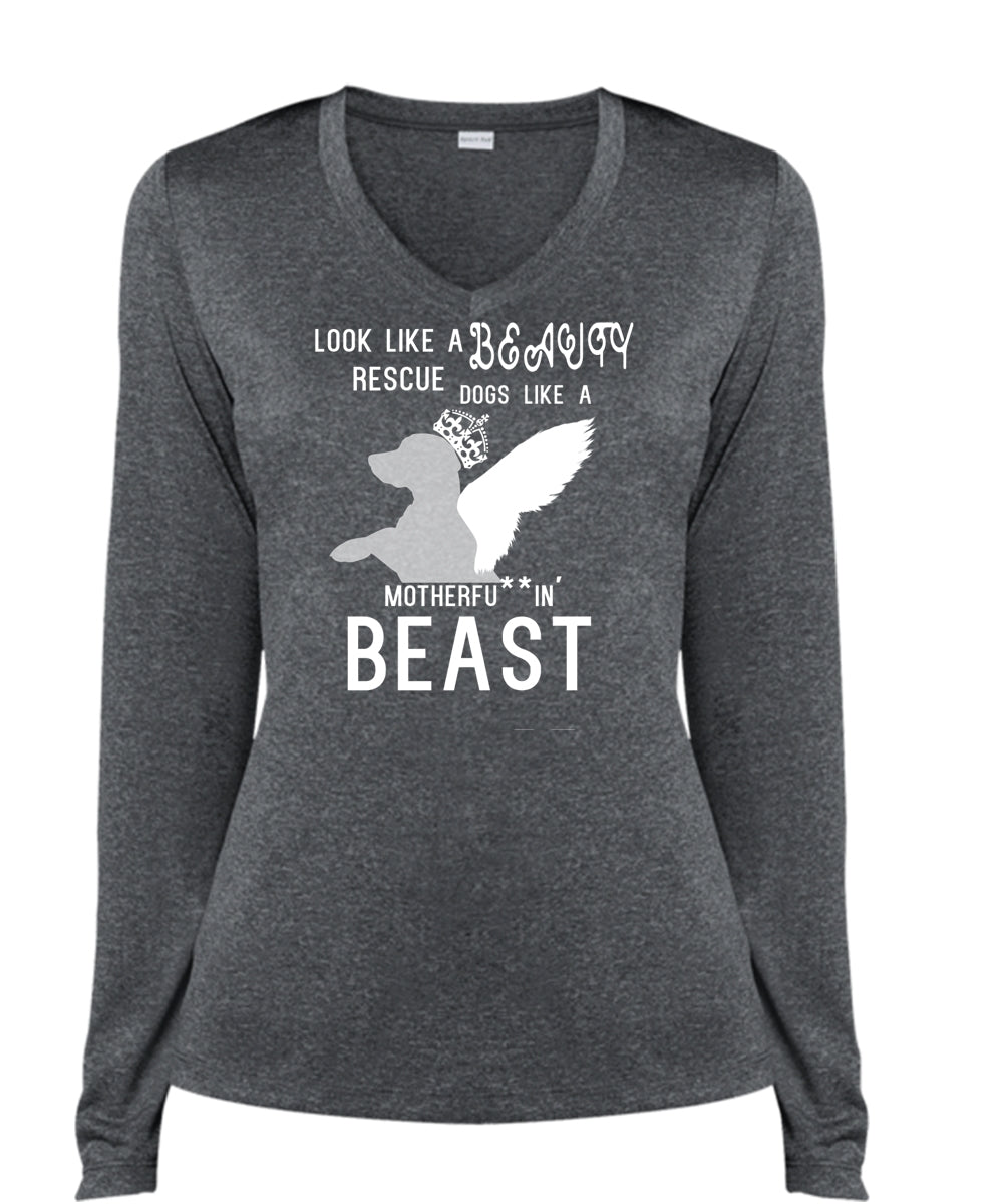 Look Like A Beauty Dogs T Shirt, Like A Mother T Shirt (Ladies LS Heather V-Neck)