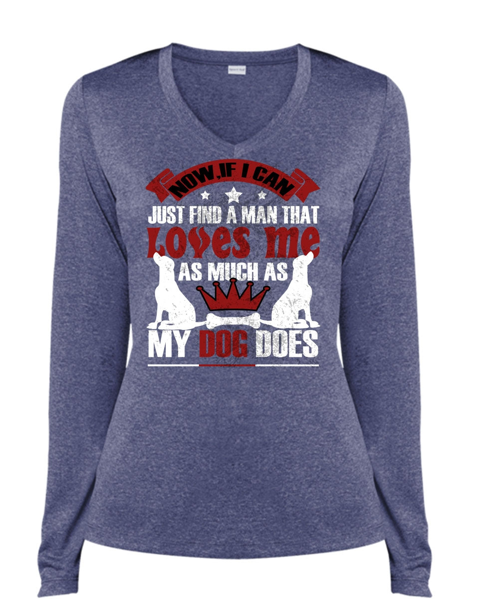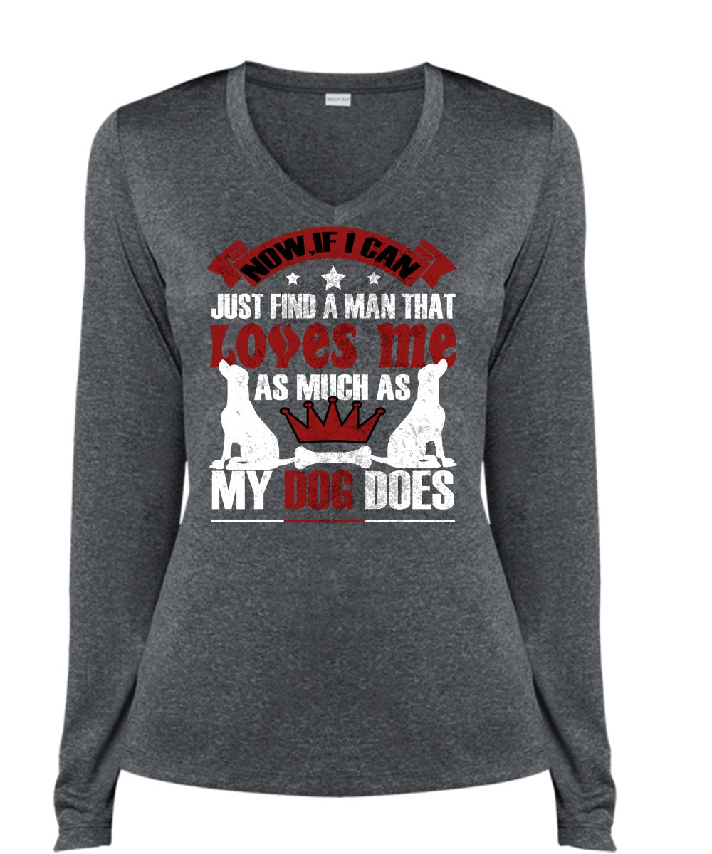 Loves Me As Much As My Dog Does T Shirt, I Can Just Find A Man T Shirt, Cool Shirt (Ladies LS Heather V-Neck)