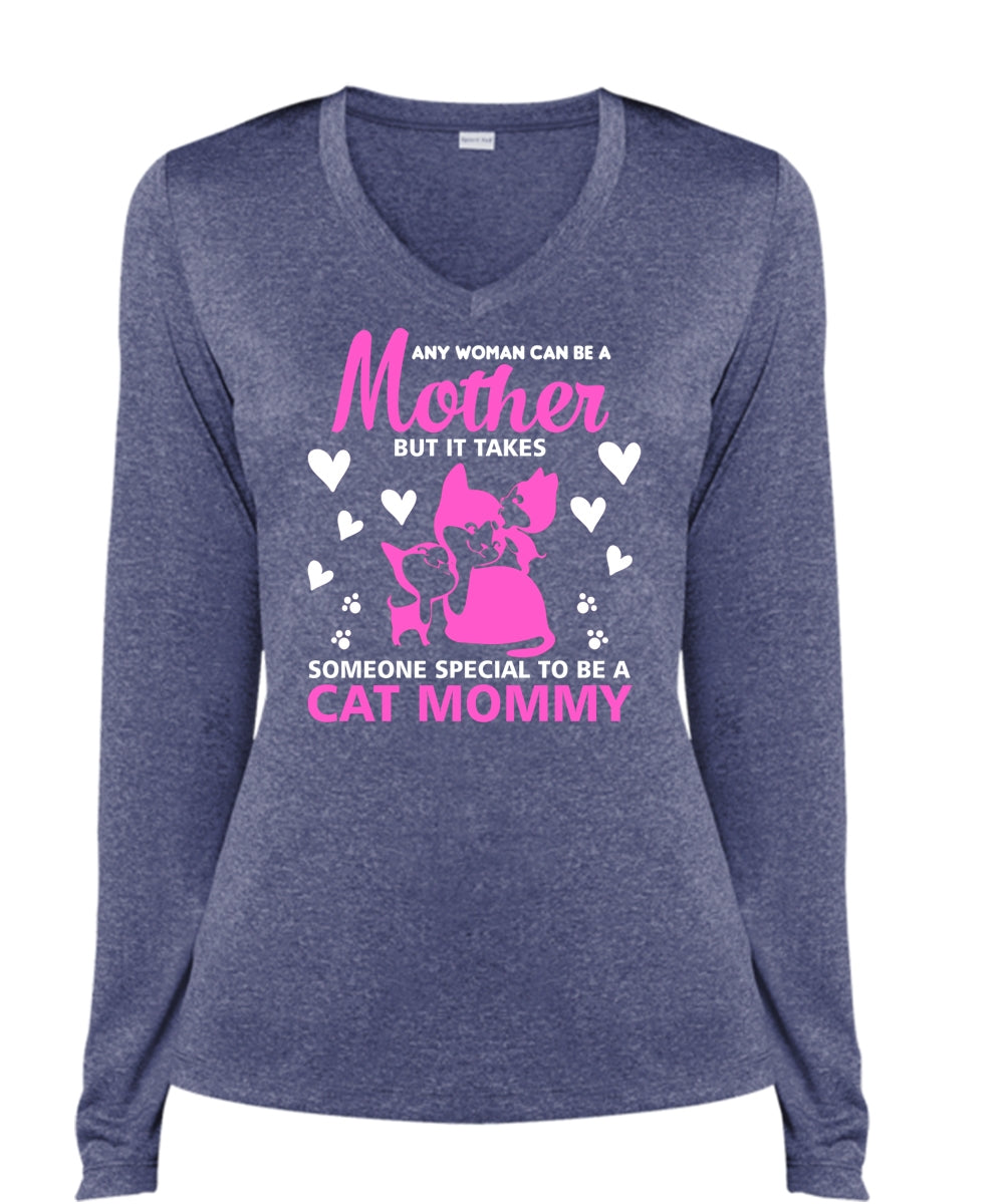 Many Woman Can Be A Mother T Shirt, It Takes Someone Special To Be A Cat Mommy T Shirt (Ladies LS Heather V-Neck)
