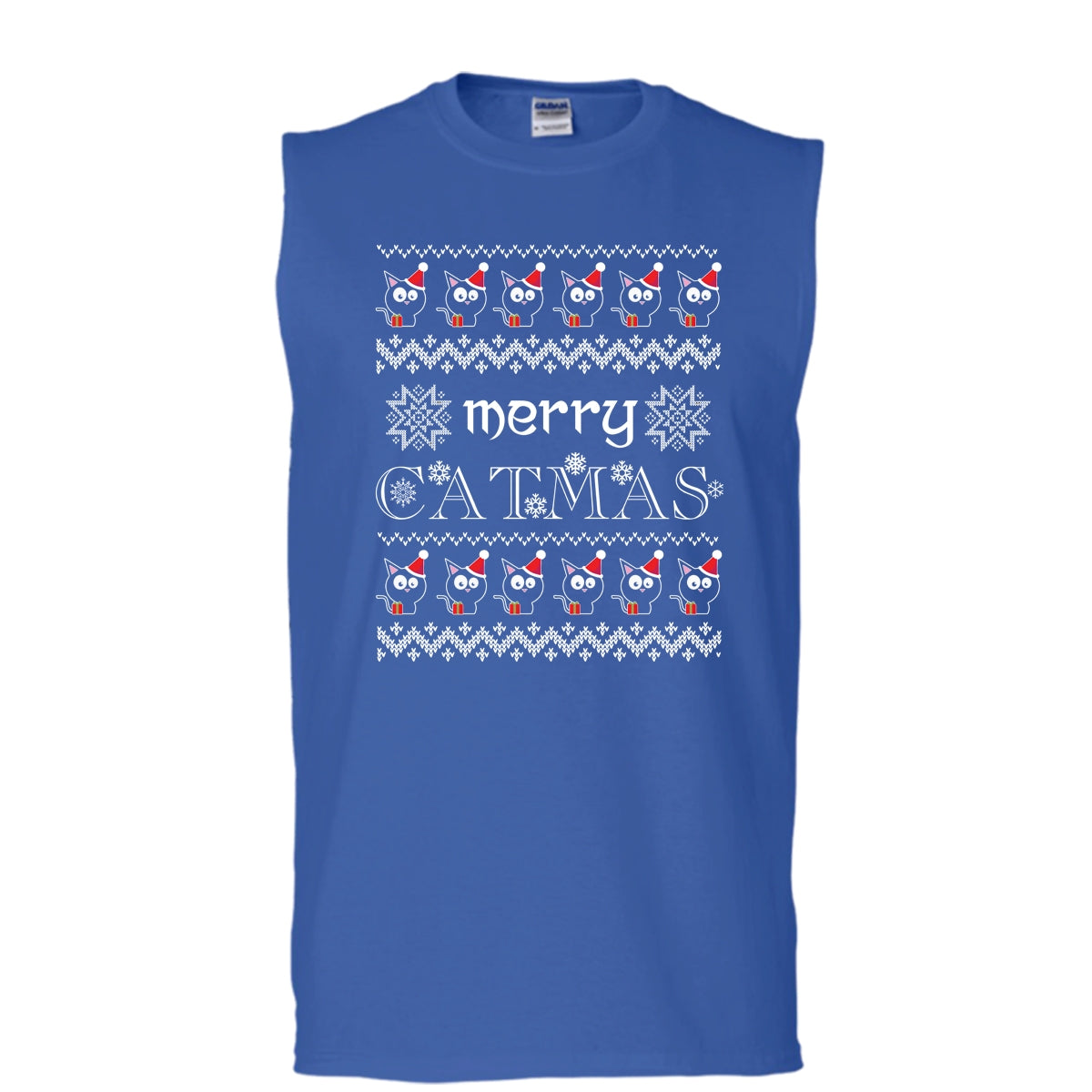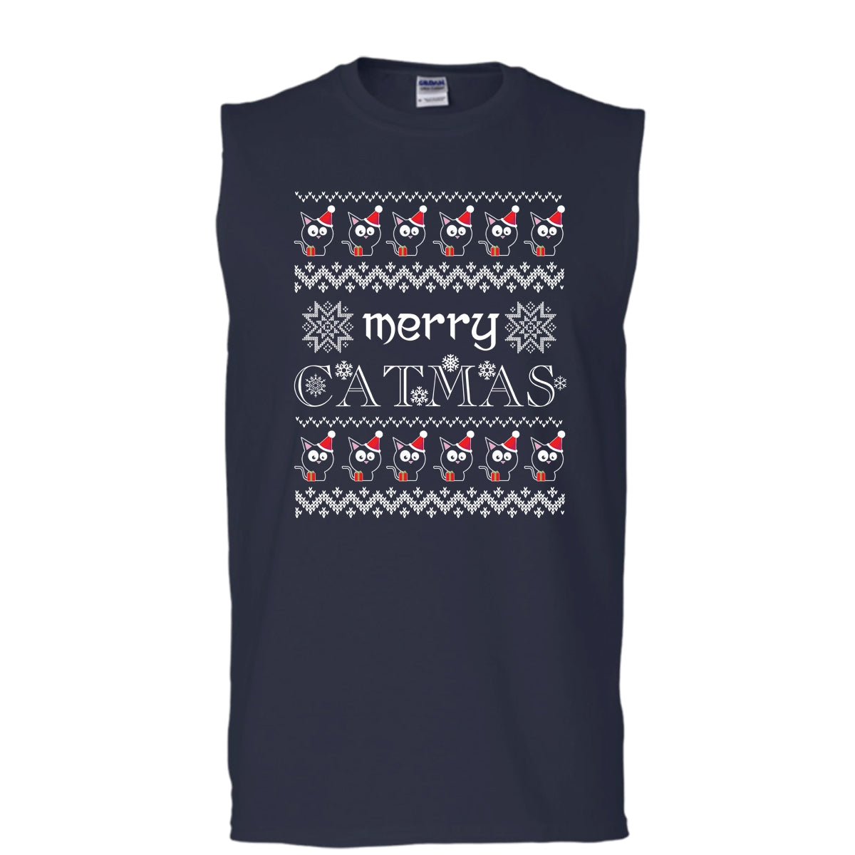 Merry Catmas T Shirt, Coolest Cat Lover T Shirt, Cool T Shirt (Men's Cotton Sleeveless)