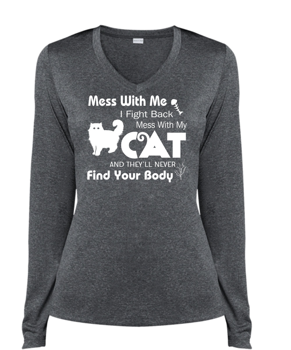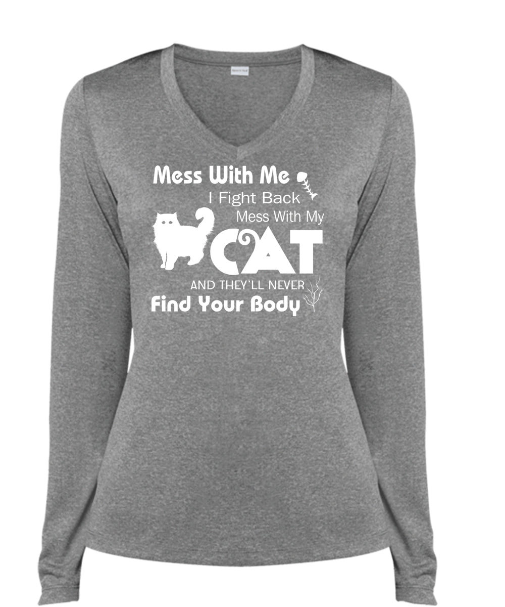 Mess With Me I Fight Back Mess With My Cat T Shirt, They'll Never Find Your Body T Shirt (Ladies LS Heather V-Neck)