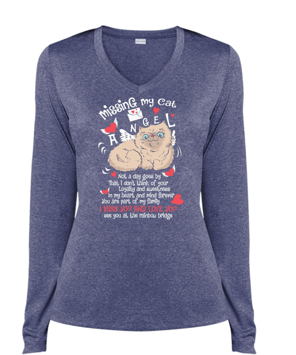 Missing My Cat Angel T Shirt, I Miss You And Love You T Shirt, Cool Shirt (Ladies LS Heather V-Neck)