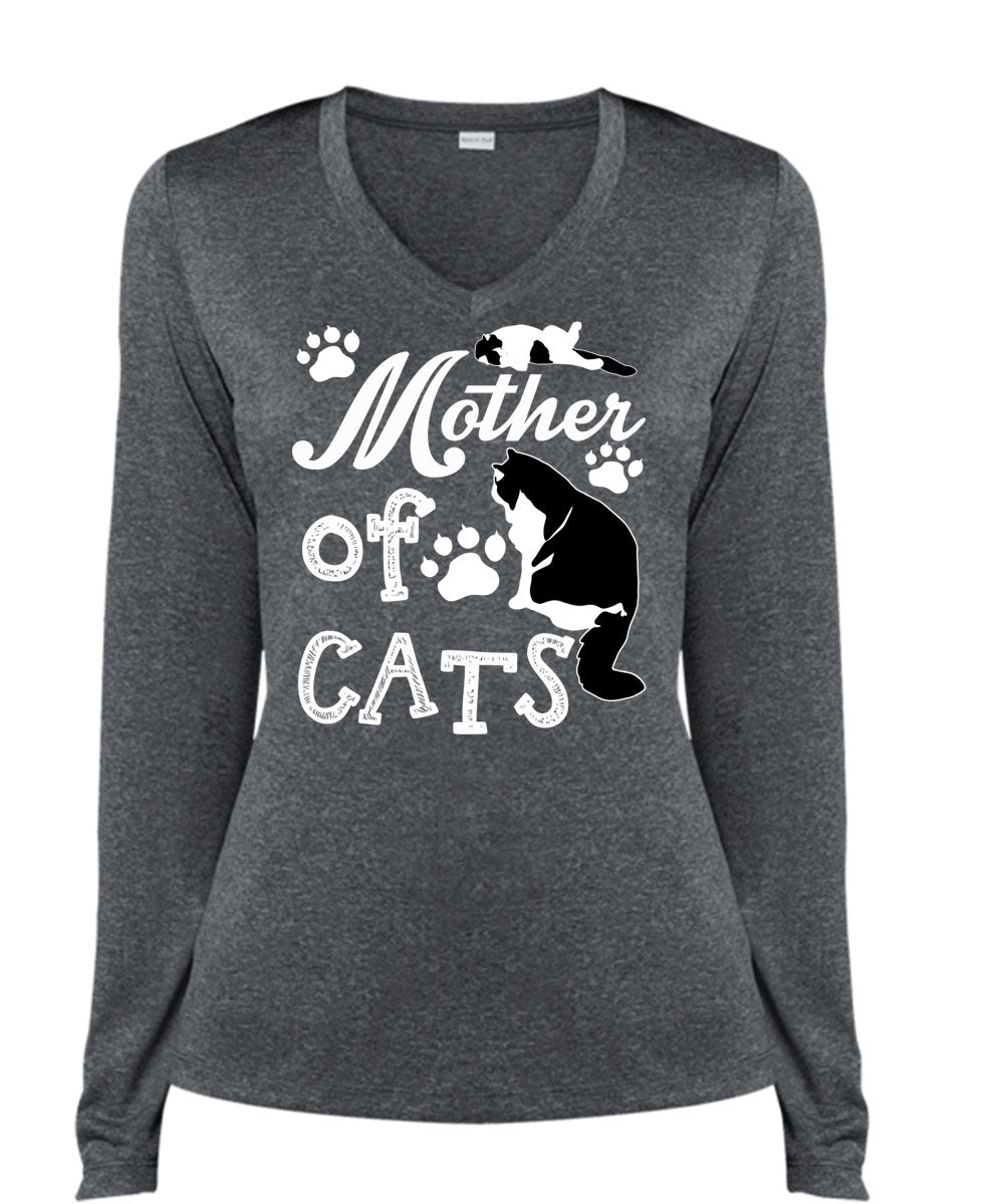 Mother Of Cats T Shirt, My Favorite T Shirt, Cool Shirt (Ladies LS Heather V-Neck)