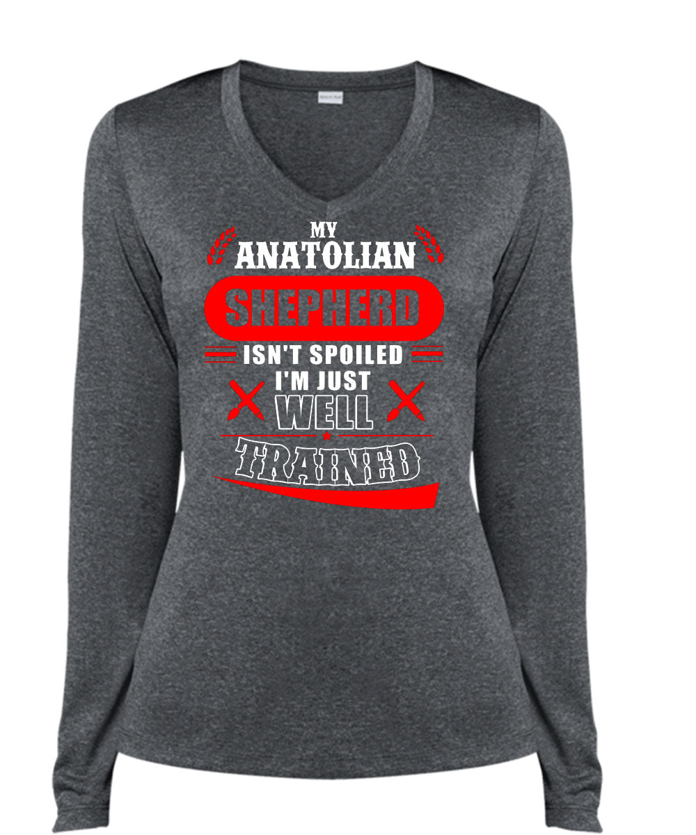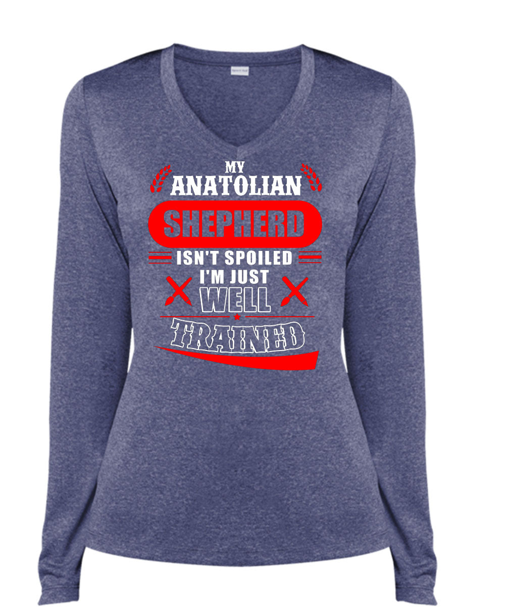 My Anatolian Shepherd Isn't Spoiled I'm Just Well Trained T Shirt, I Love Dog T Shirt, Cool Shirt (Ladies LS Heather V-Neck)