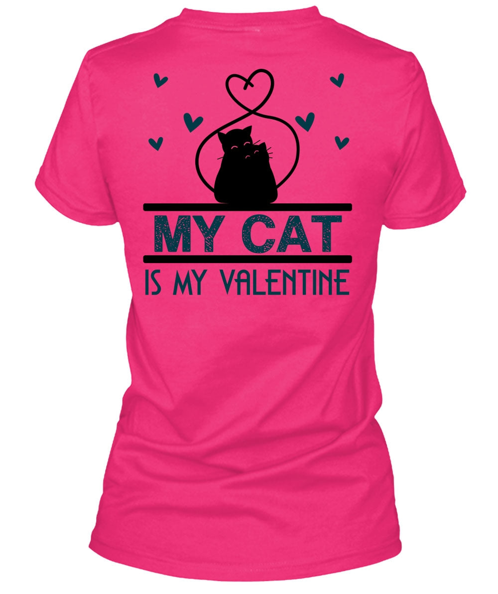 My Cat Is My Valentine T Shirt, My Favorite T Shirt, Cool Shirt (Ladies LS Heather V-Neck)