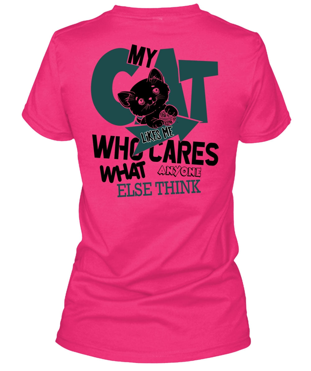 My Cat Likes Me Who Cares T Shirt, My Favorite T Shirt, Cool Shirt (Ladies LS Heather V-Neck)