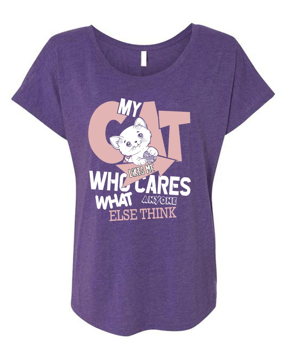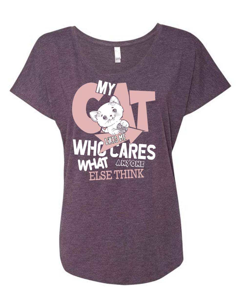 My Cat Likes Me Who Cares T Shirt, My Favorite T Shirt, Cool Shirt (Ladies' Triblend Dolman Sleeve)