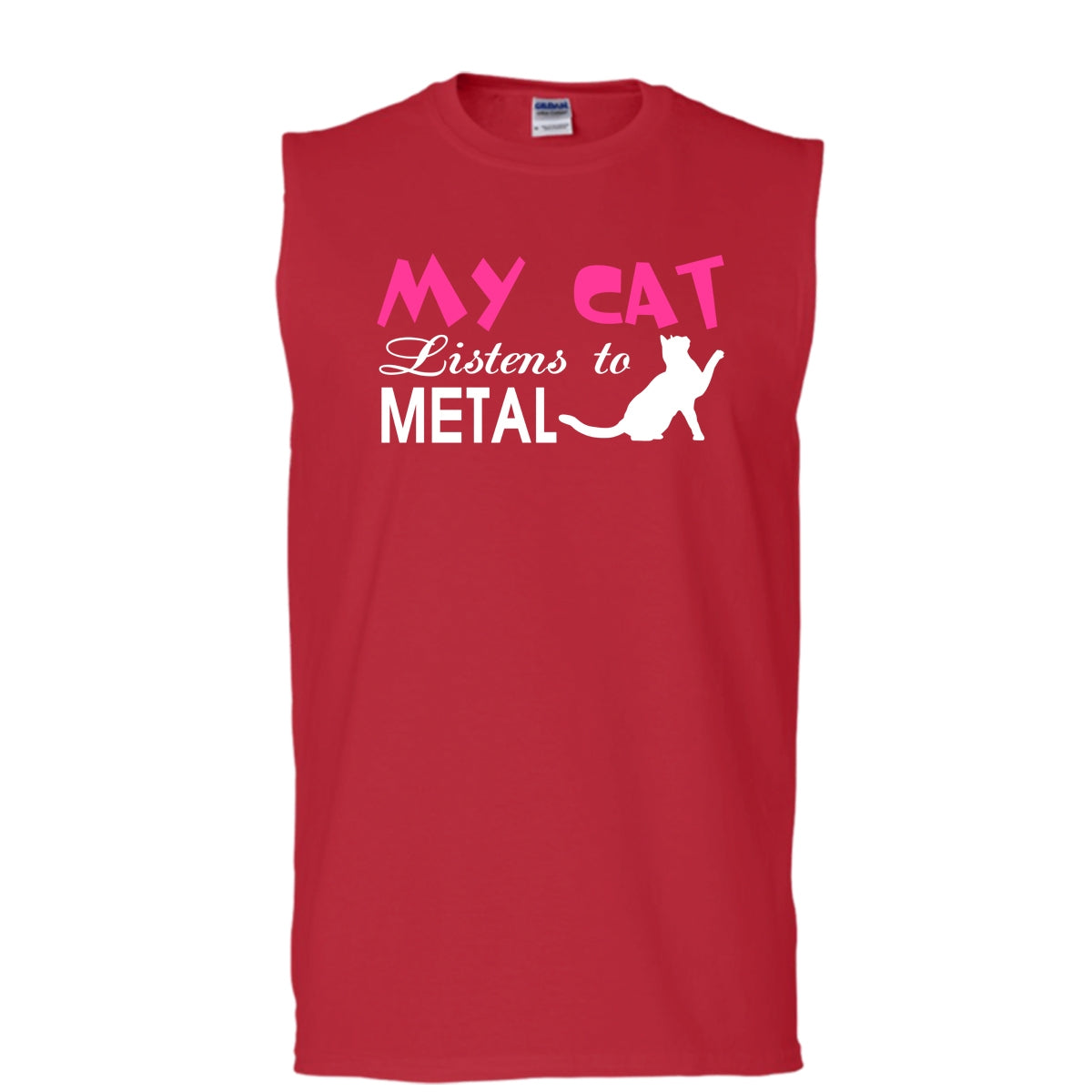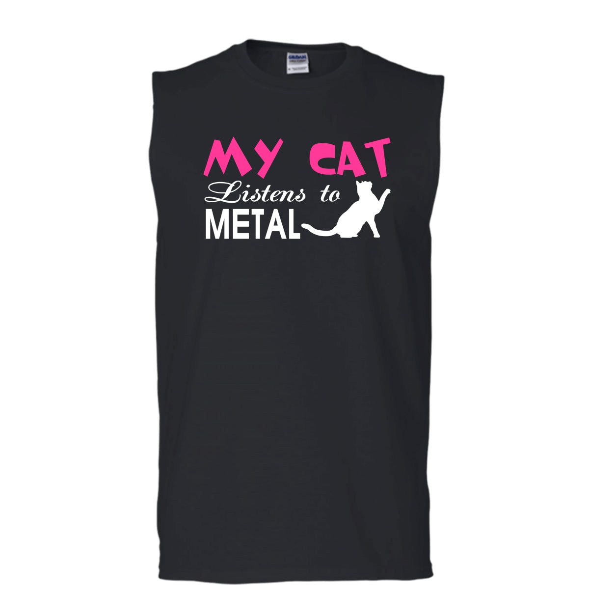 My Cat Listens To Metal Shirt, Cool Cat Shirt (Men's Cotton Sleeveless)