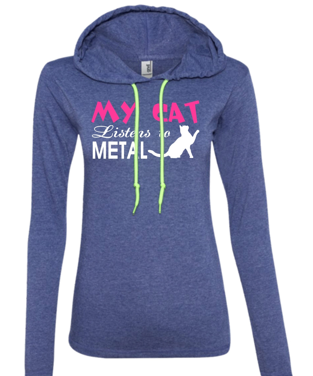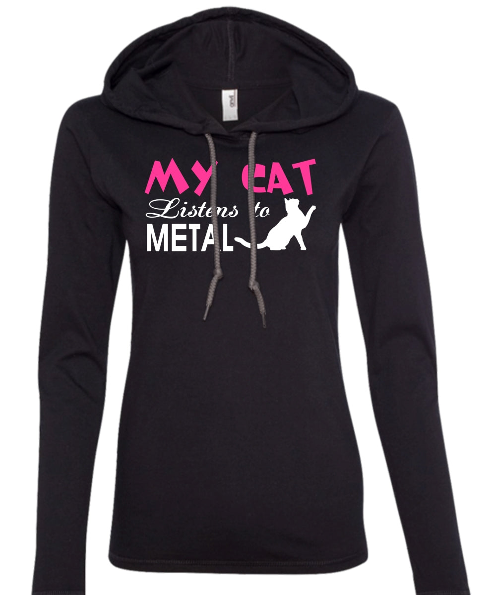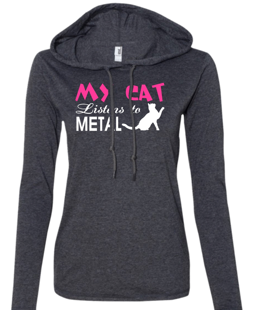 My Cat Listens To Metal T Shirt, My Pets T Shirt, I Love My Cat T Shirt (Anvil Ladies Ringspun Hooded)