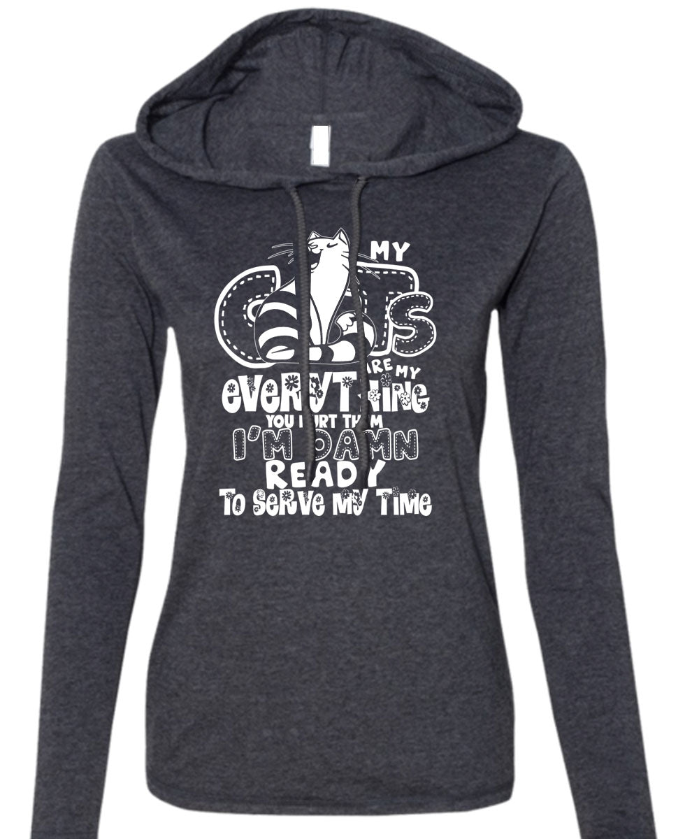 My Cats Are My Everything T Shirt, I'm Damn Ready To Serve My Time T Shirt (Anvil Ladies Ringspun Hooded)
