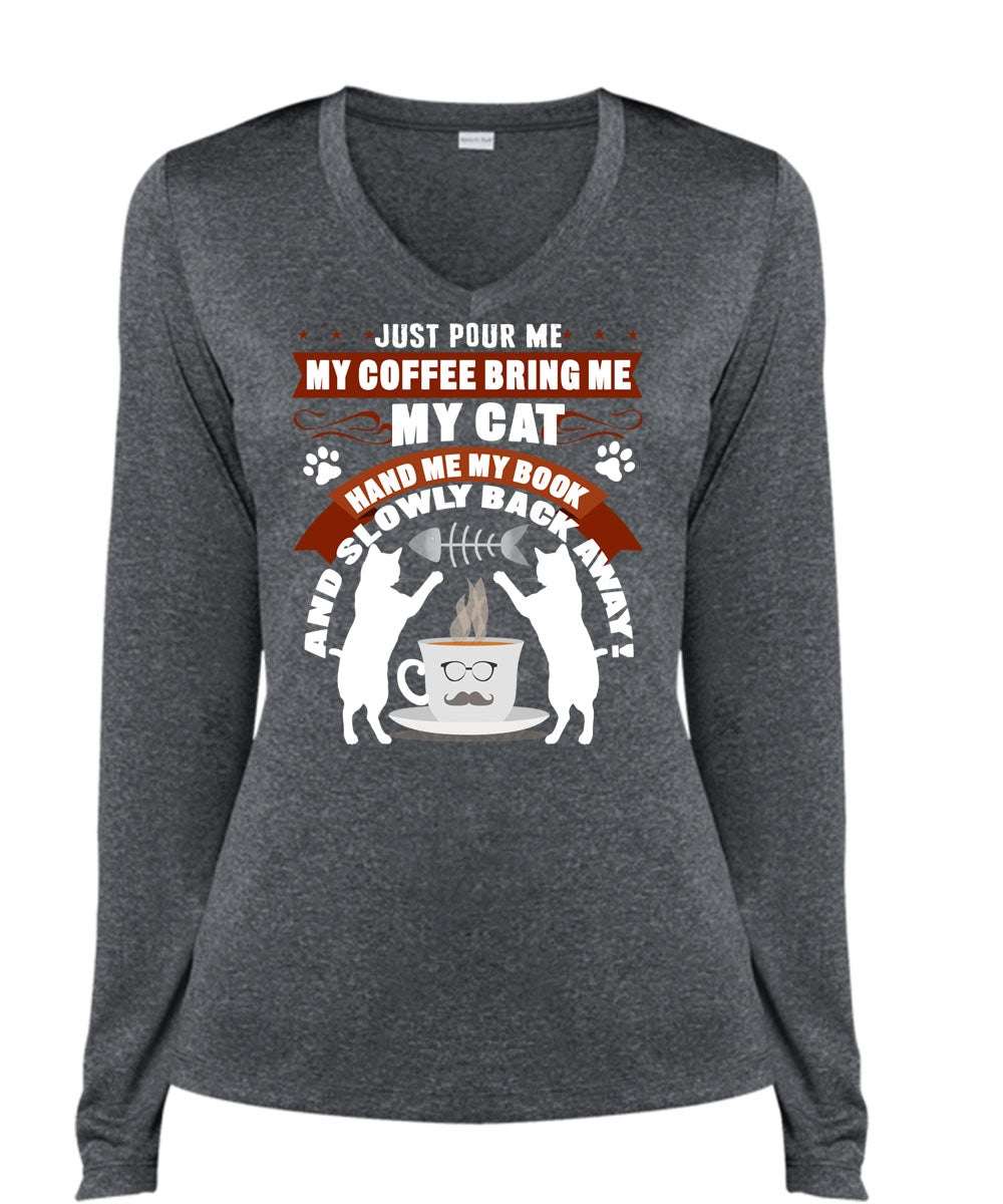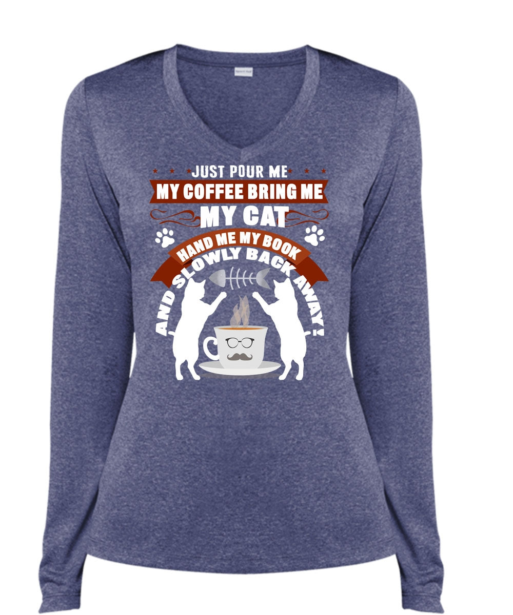 My Coffee Bring Me My Cat T Shirt, My Favorite T Shirt, Cool Shirt (Ladies LS Heather V-Neck)
