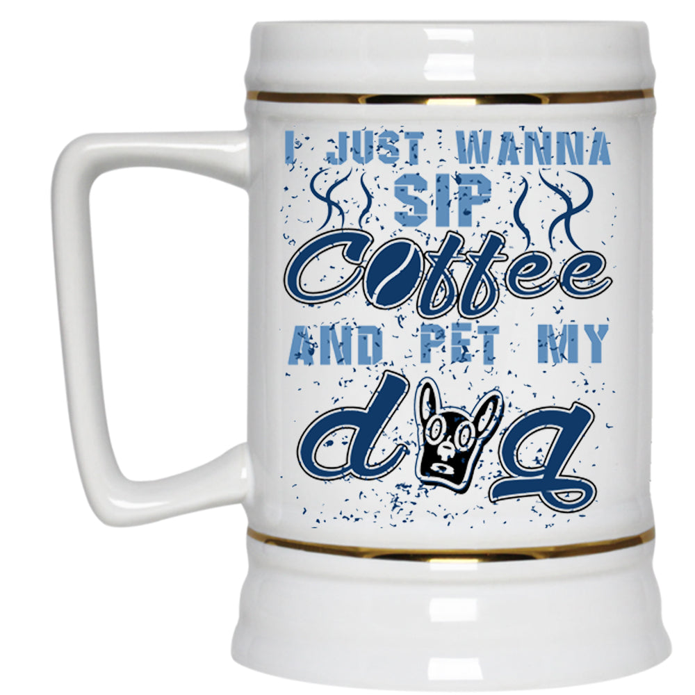 My Dog Beer Stein 22oz, I Just Wanna Sip Coffee And Pet Beer Mug