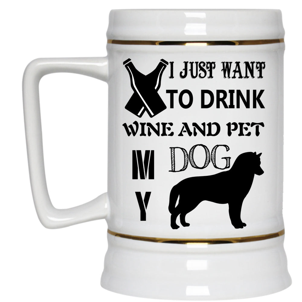 My Dog Beer Stein 22oz, I Just Want To Drink Wine And Pet Beer Mug