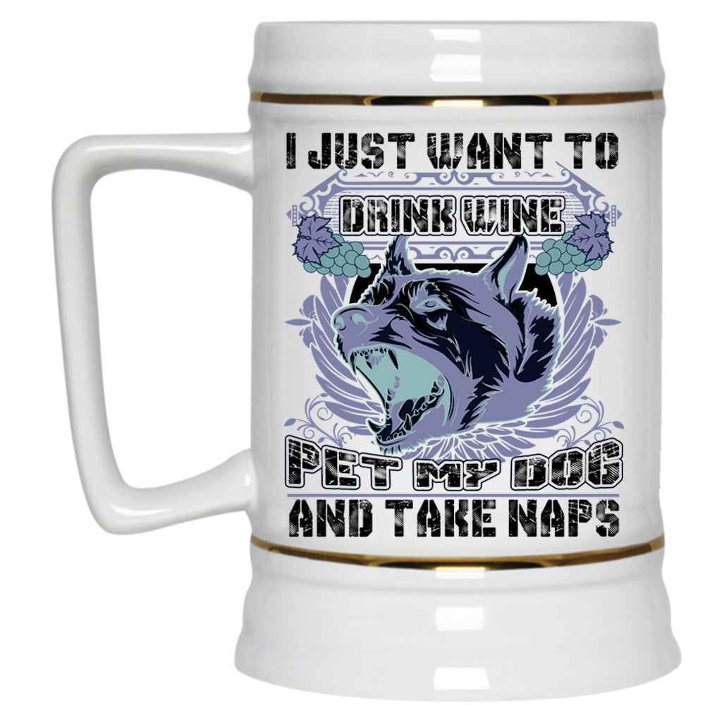 My Dog Beer Stein 22oz, I Just Want To Drink Wine Pet Beer Mug