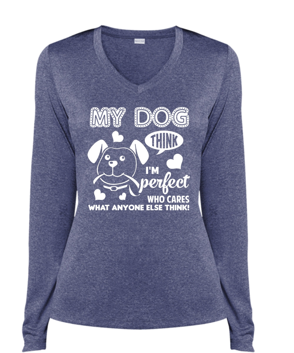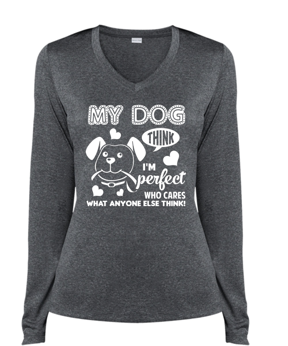 My Dog T Shirt, Who Cares What Anyone Else Think T Shirt, Pets T Shirt (Ladies LS Heather V-Neck)