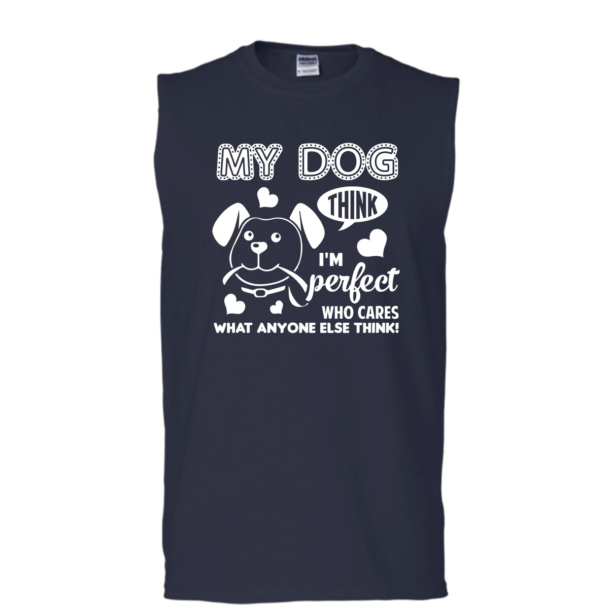 My Dog Think I'm Perfect Shirt, Who Care What Anyone Else Think Shirt (Men's Cotton Sleeveless)