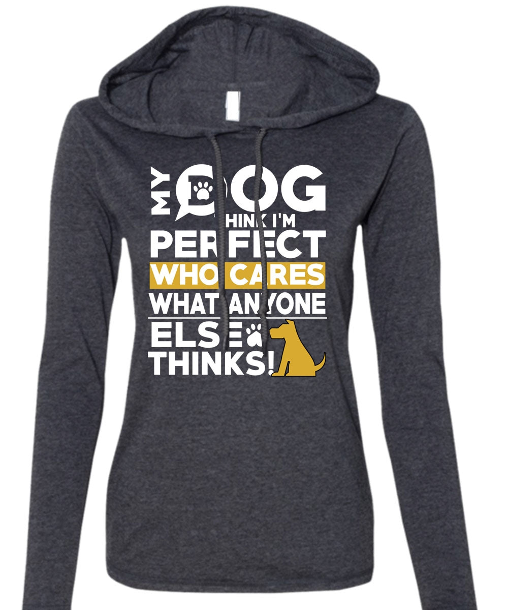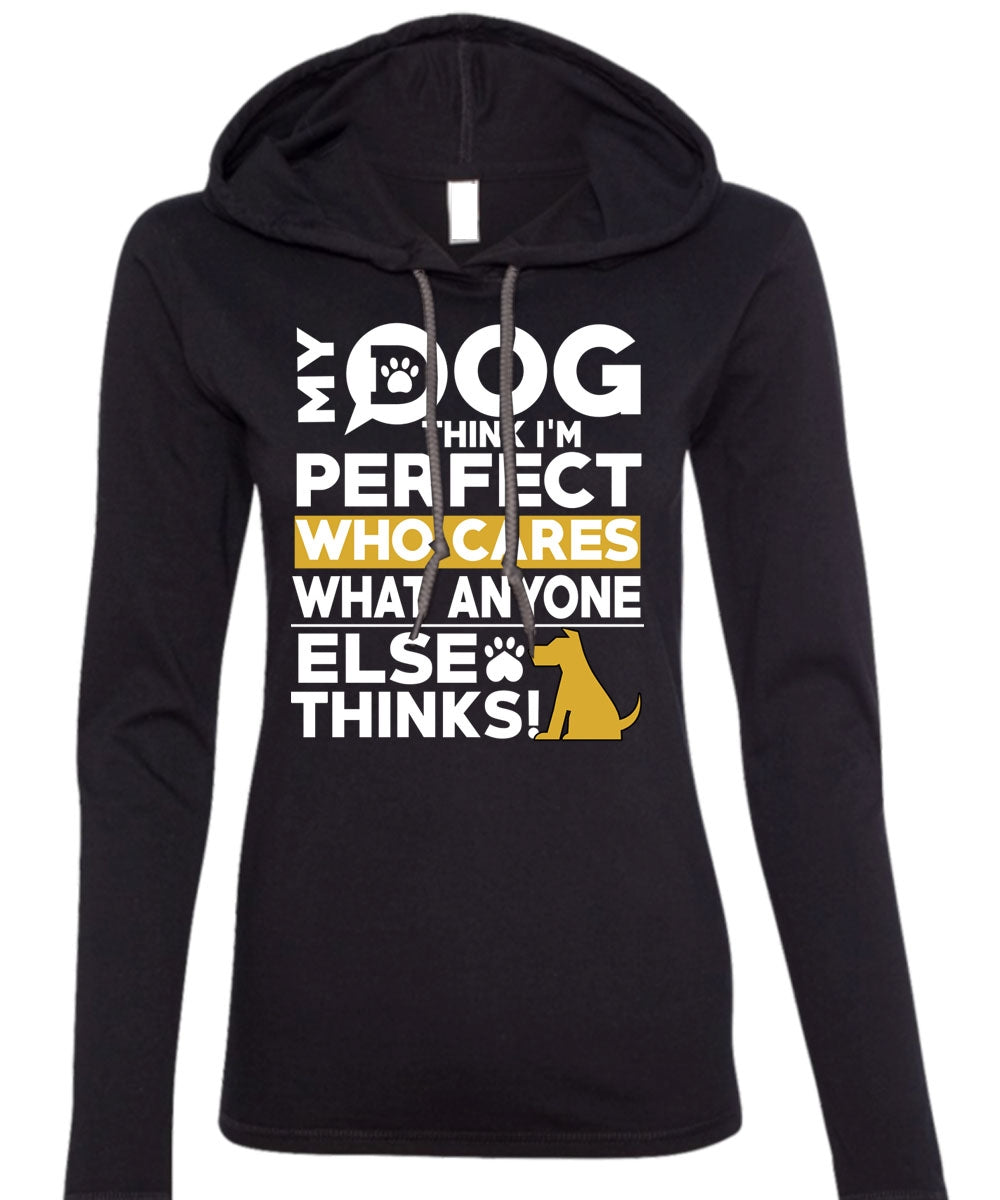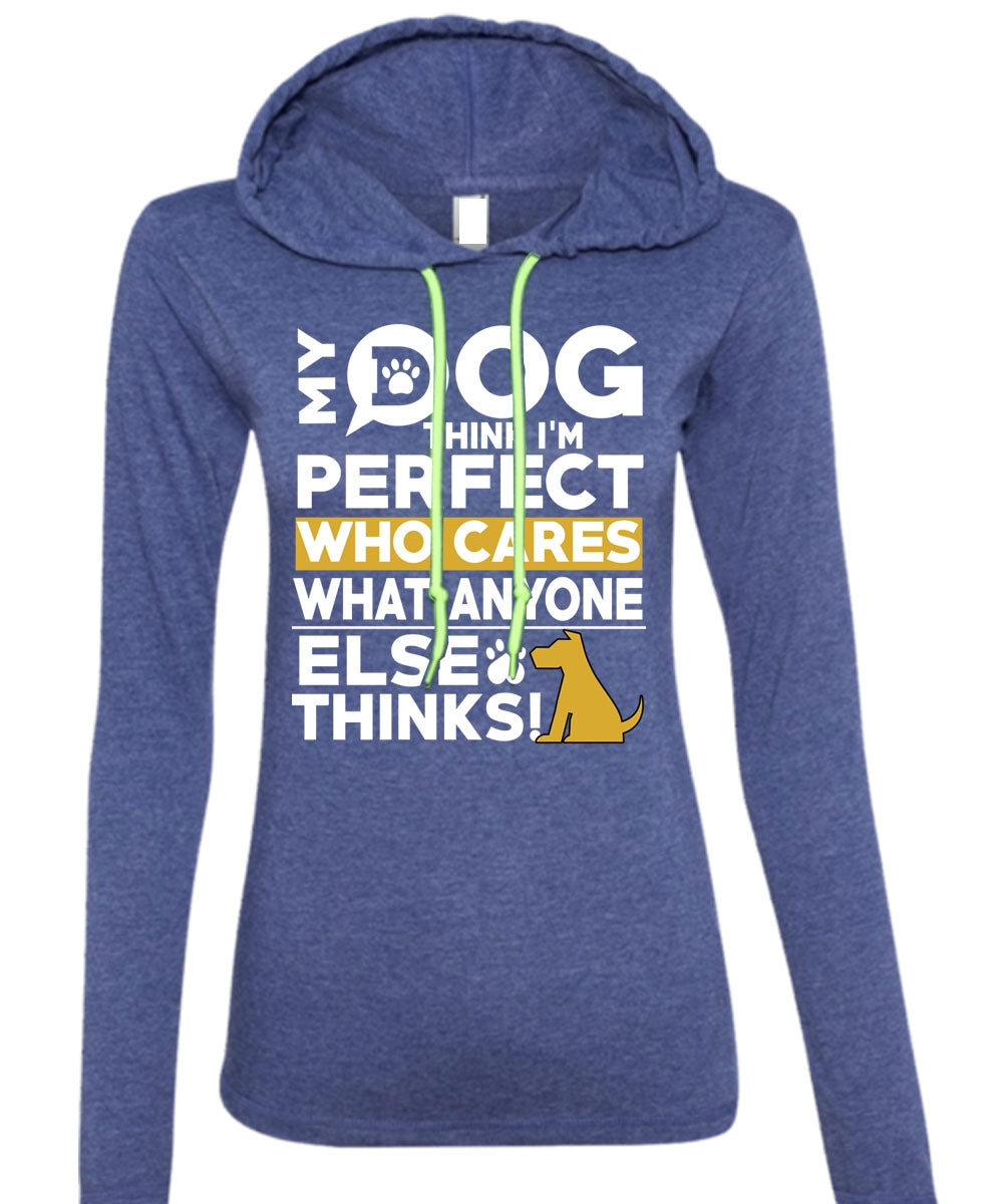 My Dog Think T Shirt, Who Cares What Anyone Else Thinks T Shirt (Anvil Ladies Ringspun Hooded)