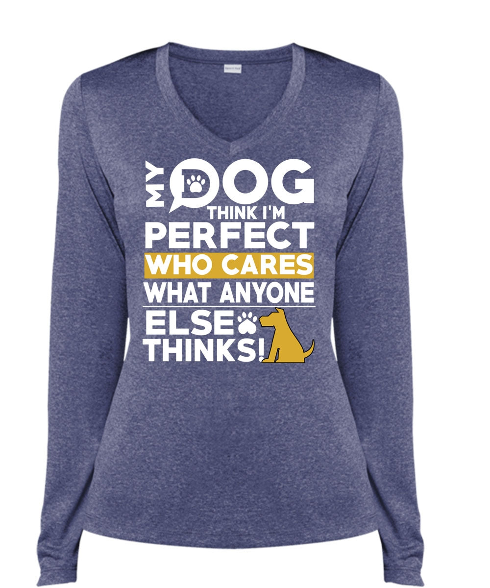 My Dog Think T Shirt, Who Cares What Anyone Else Thinks T Shirt, Cool Shirt (Ladies LS Heather V-Neck)