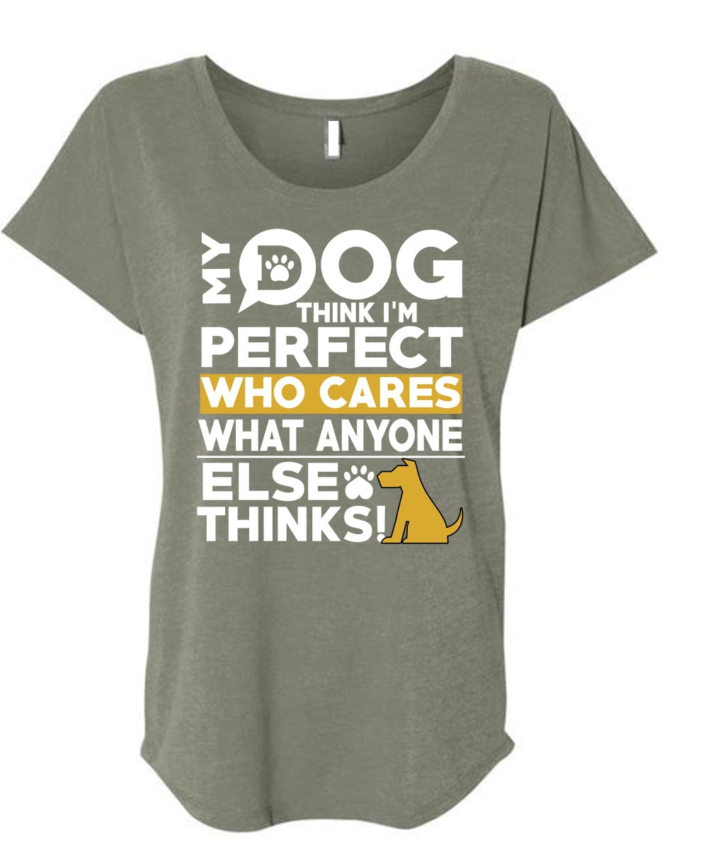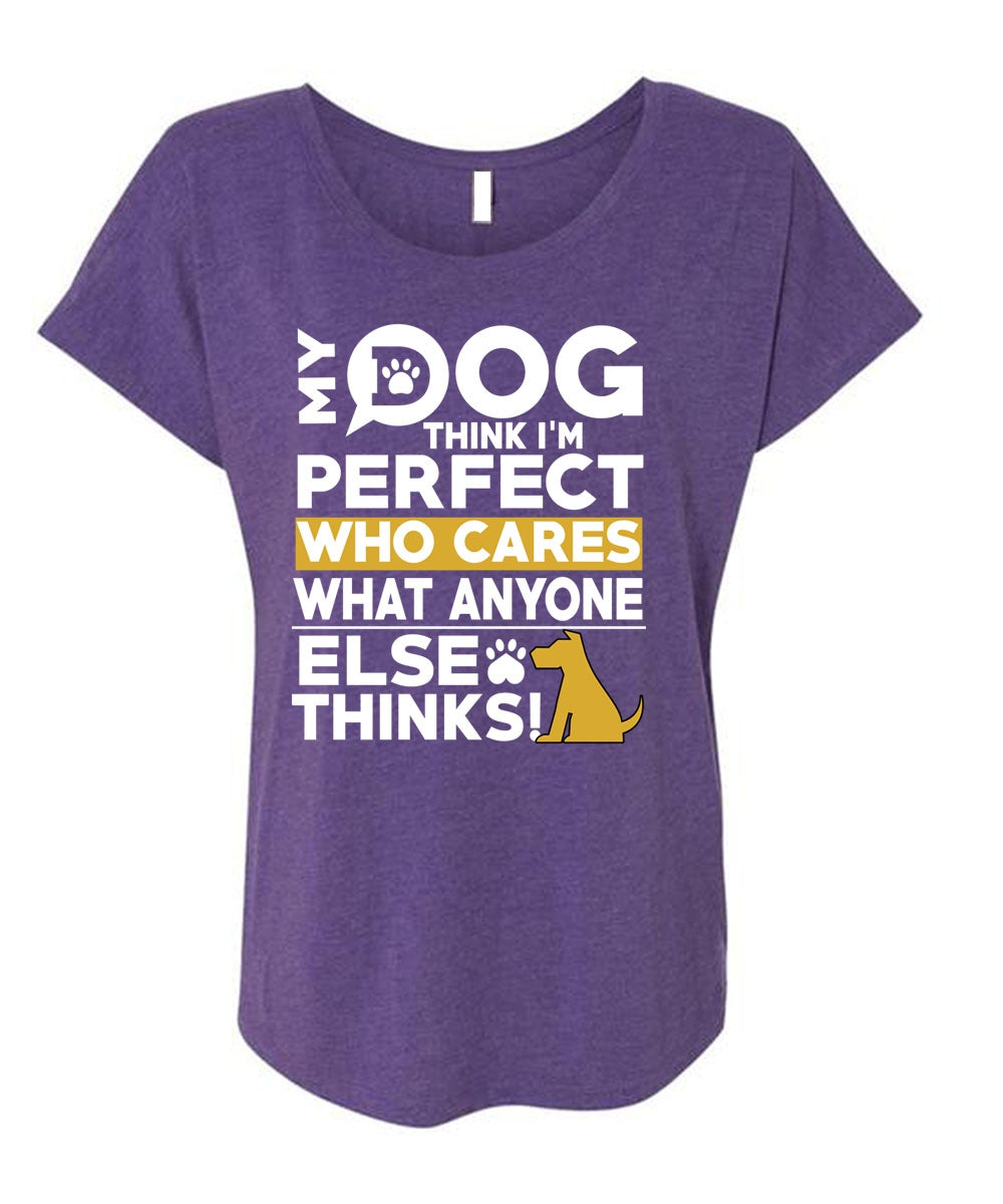 My Dog Think T Shirt, Who Cares What Anyone Else Thinks T Shirt, Cool Shirt (Ladies' Triblend Dolman Sleeve)