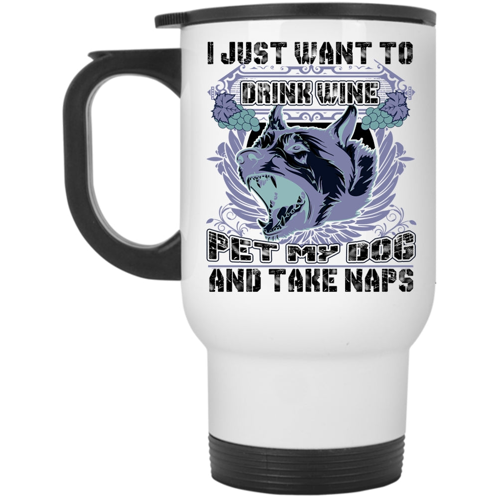 My Dog Travel Mug, I Just Want To Drink Wine Pet Mug