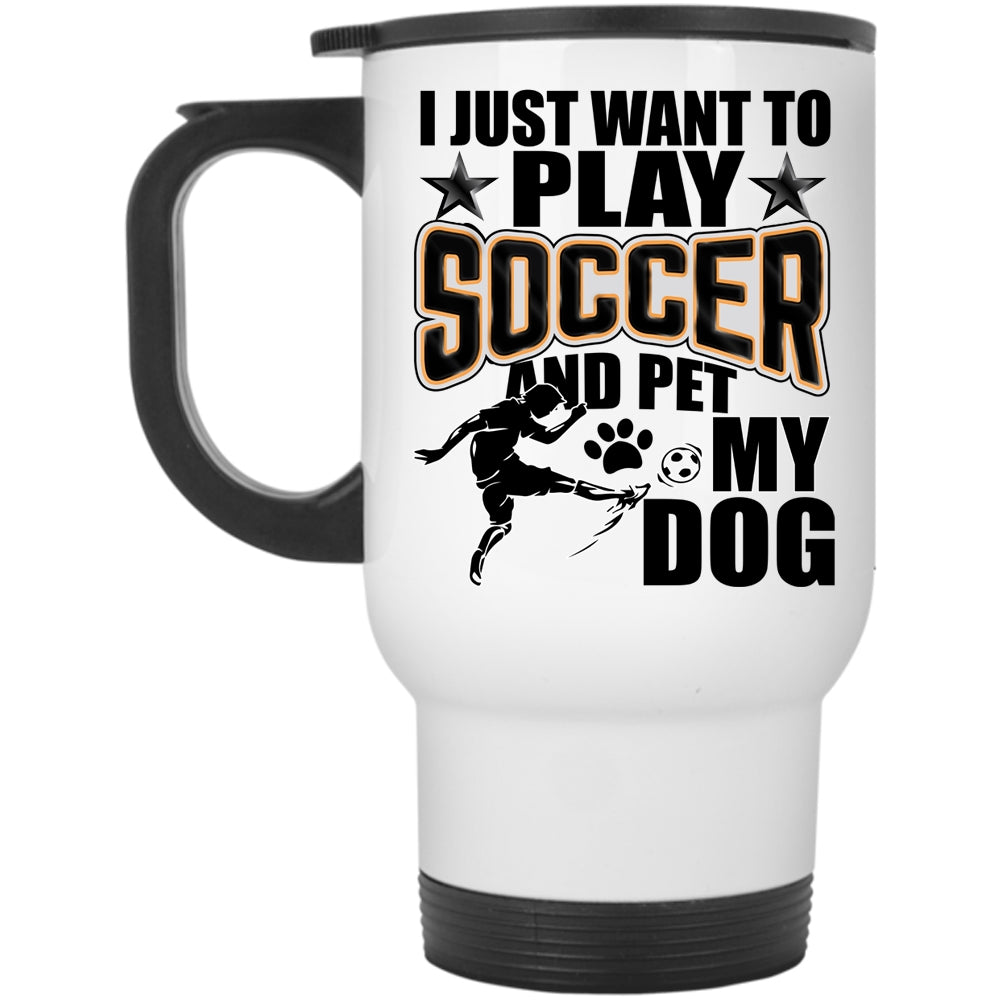 My Dog Travel Mug, I Just Want To Play Soccer And Pet Mug