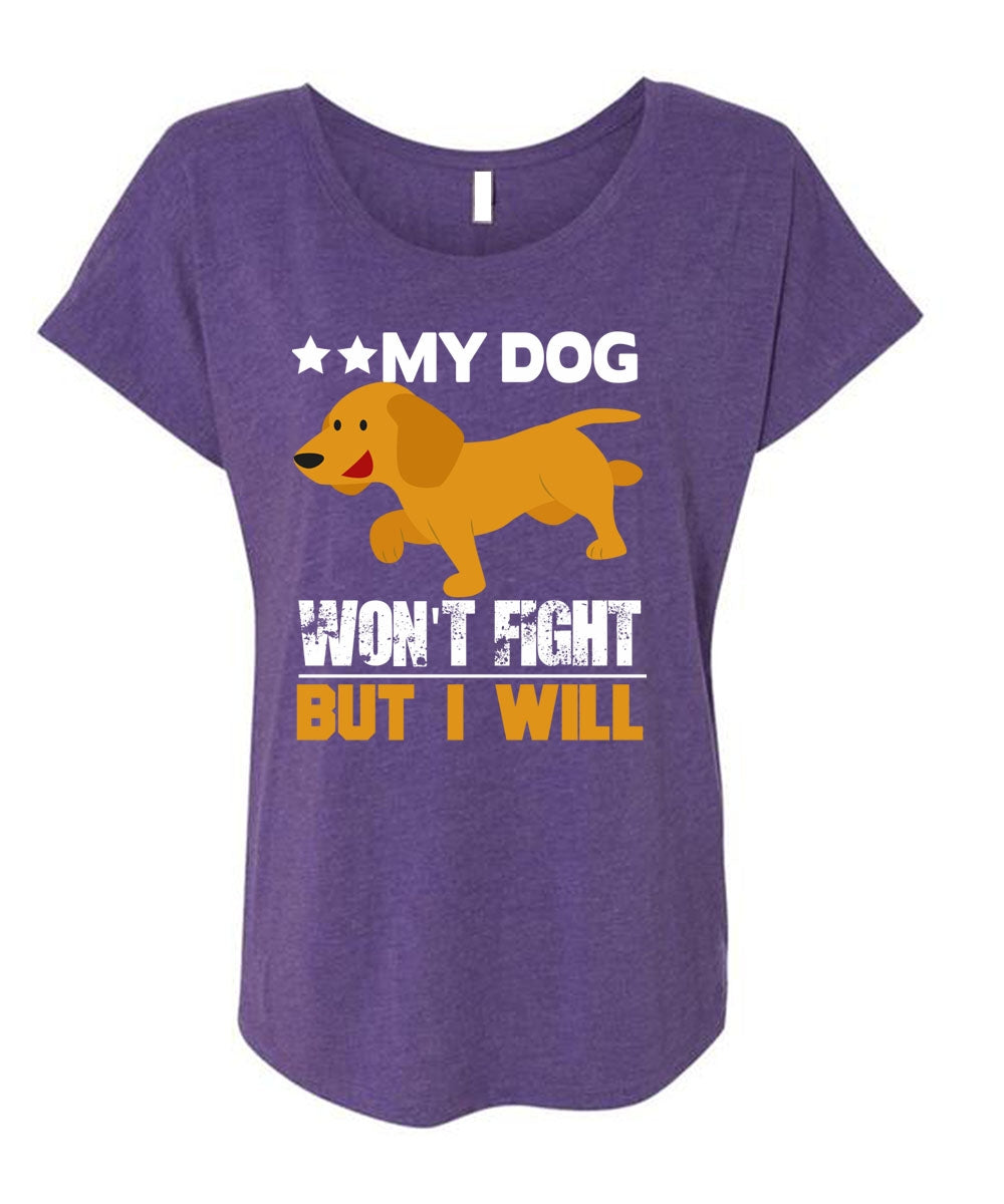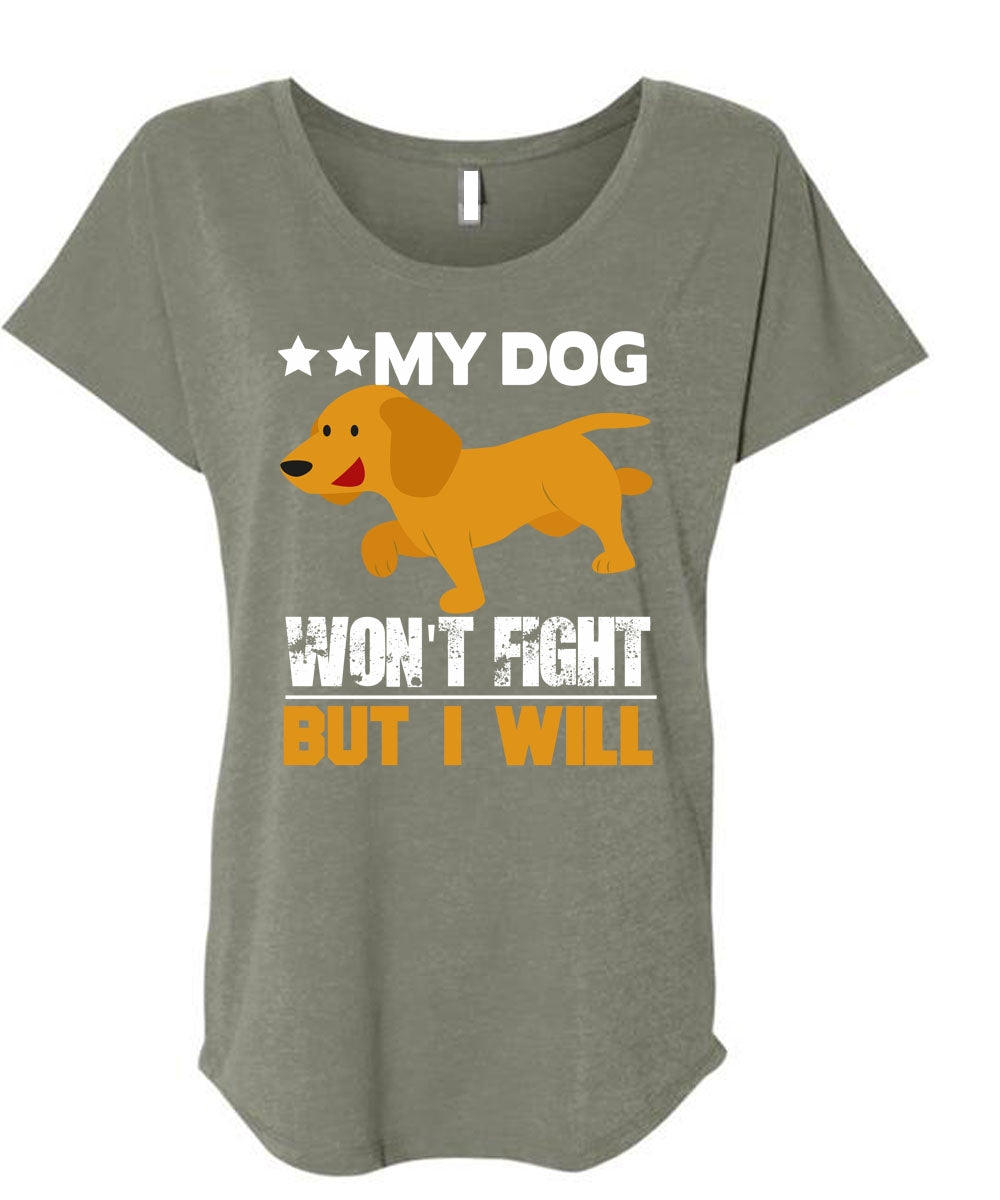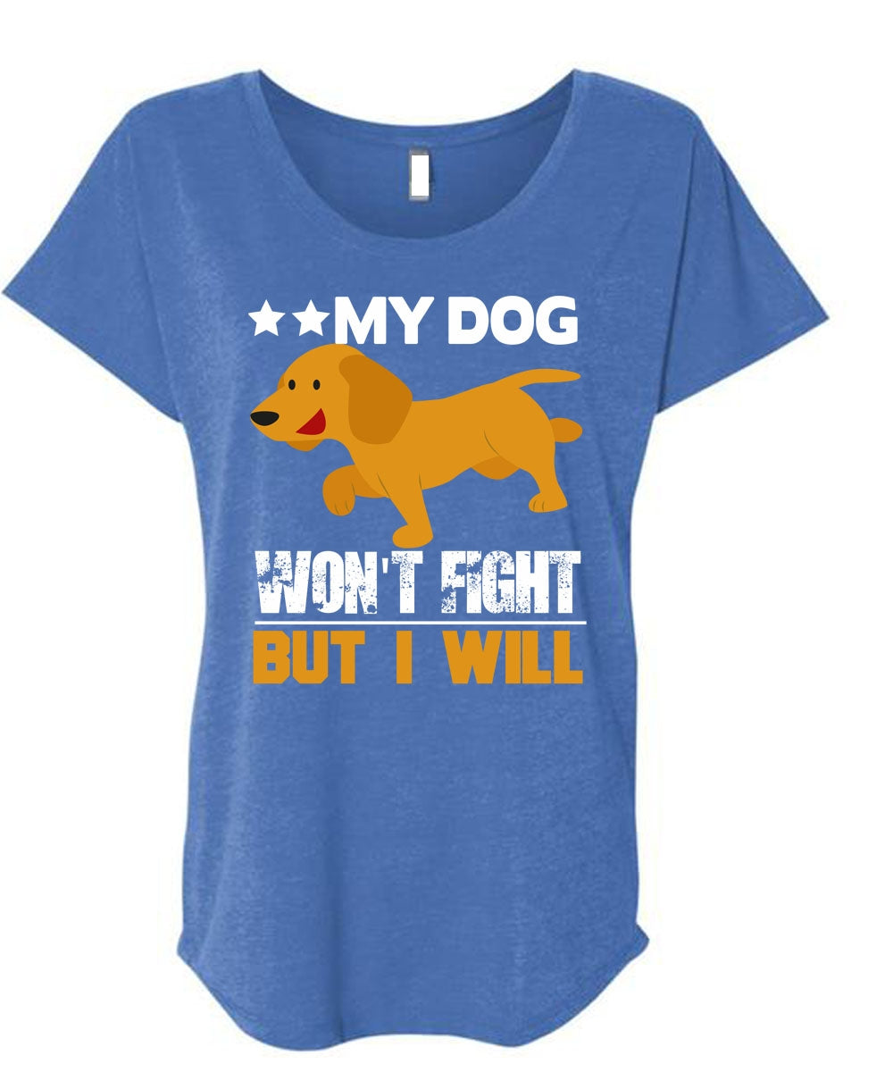 My Dog Won't Fight But I Will T Shirt, My Favorite T Shirt, Cool Shirt (Ladies' Triblend Dolman Sleeve)