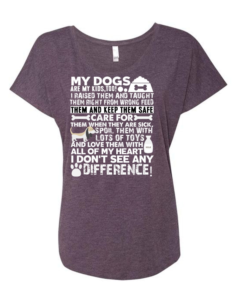 My Dogs Are My Kids T Shirt, I Don't See Any Difference T Shirt, Cool Shirt (Ladies' Triblend Dolman Sleeve)