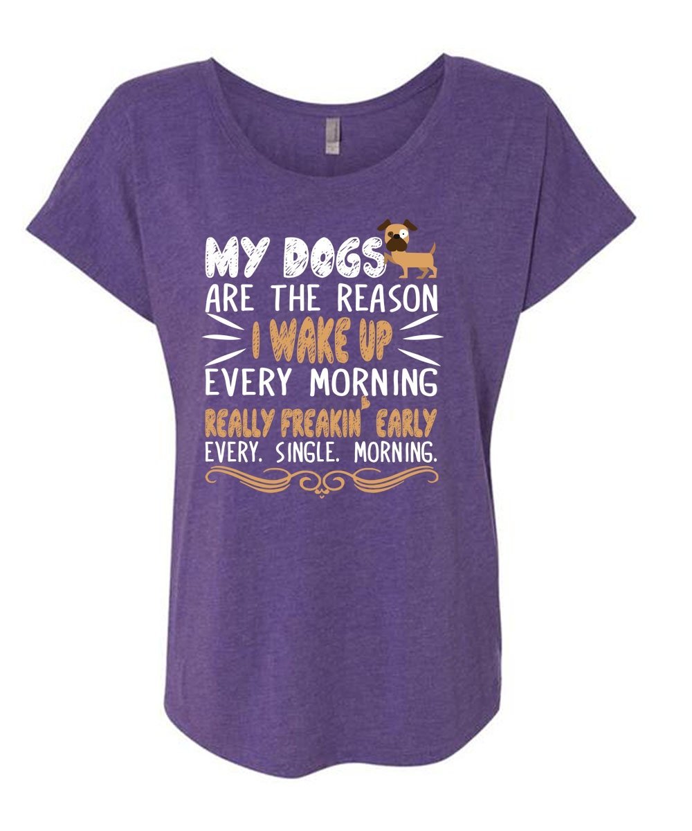 My Dogs Are The Reason T Shirt, I Wake Up Every Morning Really Freaking Early T Shirt (Ladies' Triblend Dolman Sleeve)