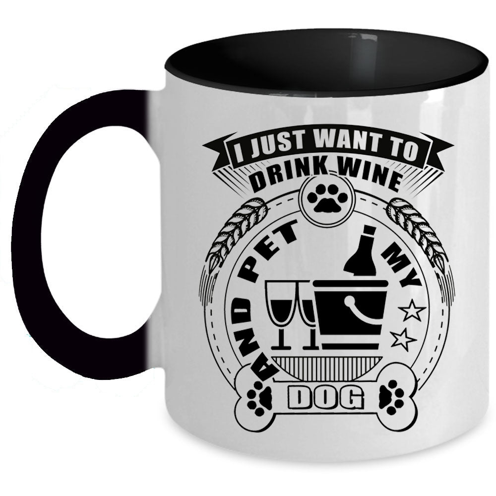 My Dogs Coffee Mug, I Just Want To Drink Wine And Pet Accent Mug
