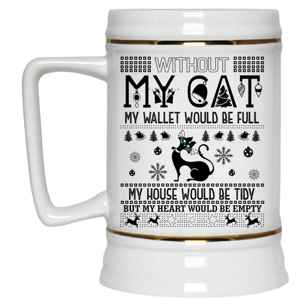 My Heart Would Be Empty Beer Stein 22oz, Without My Cat Beer Mug