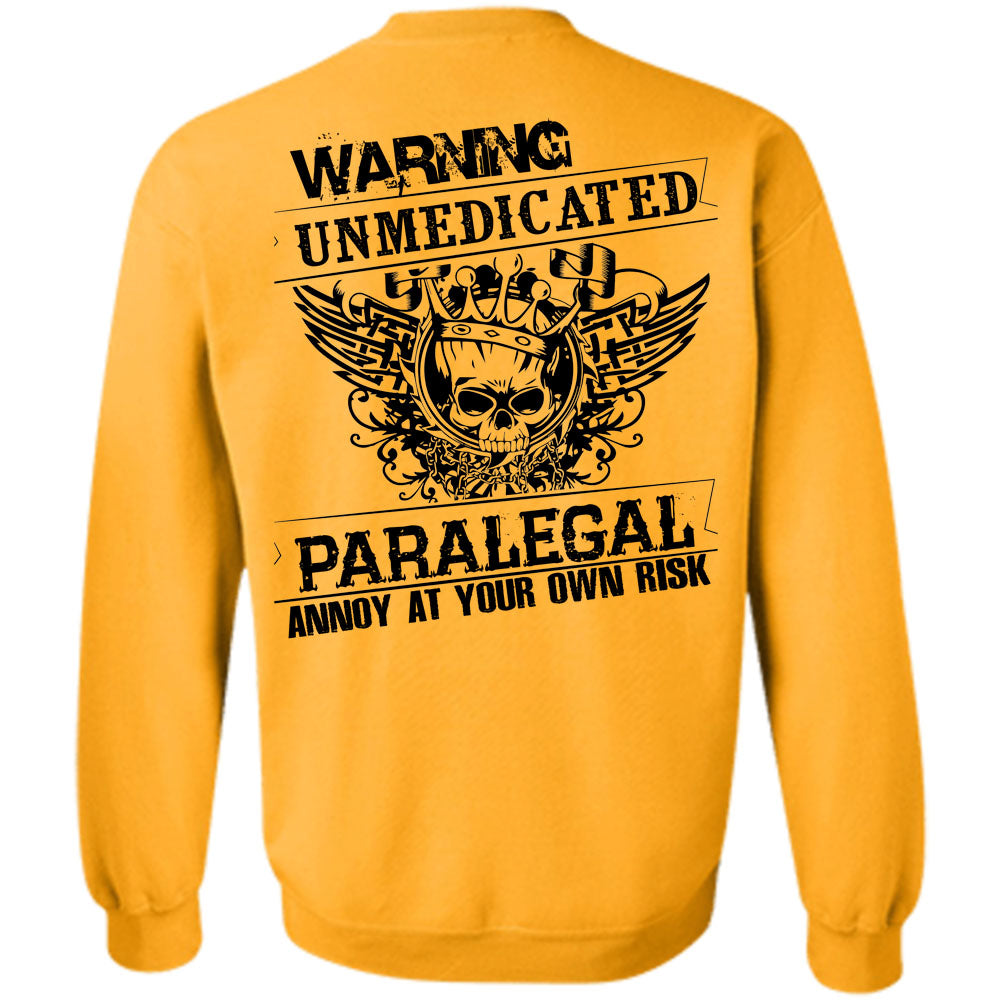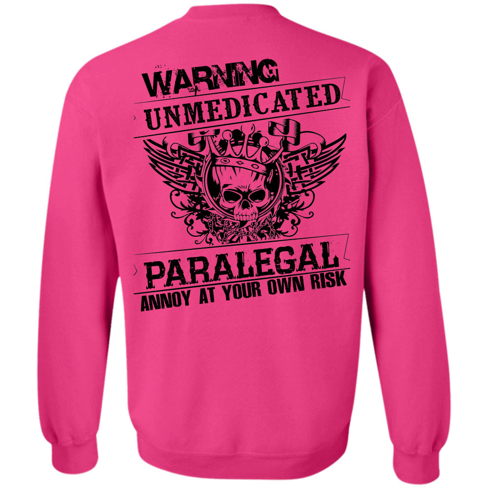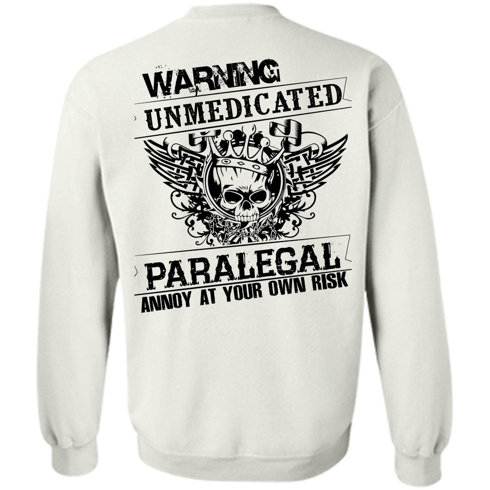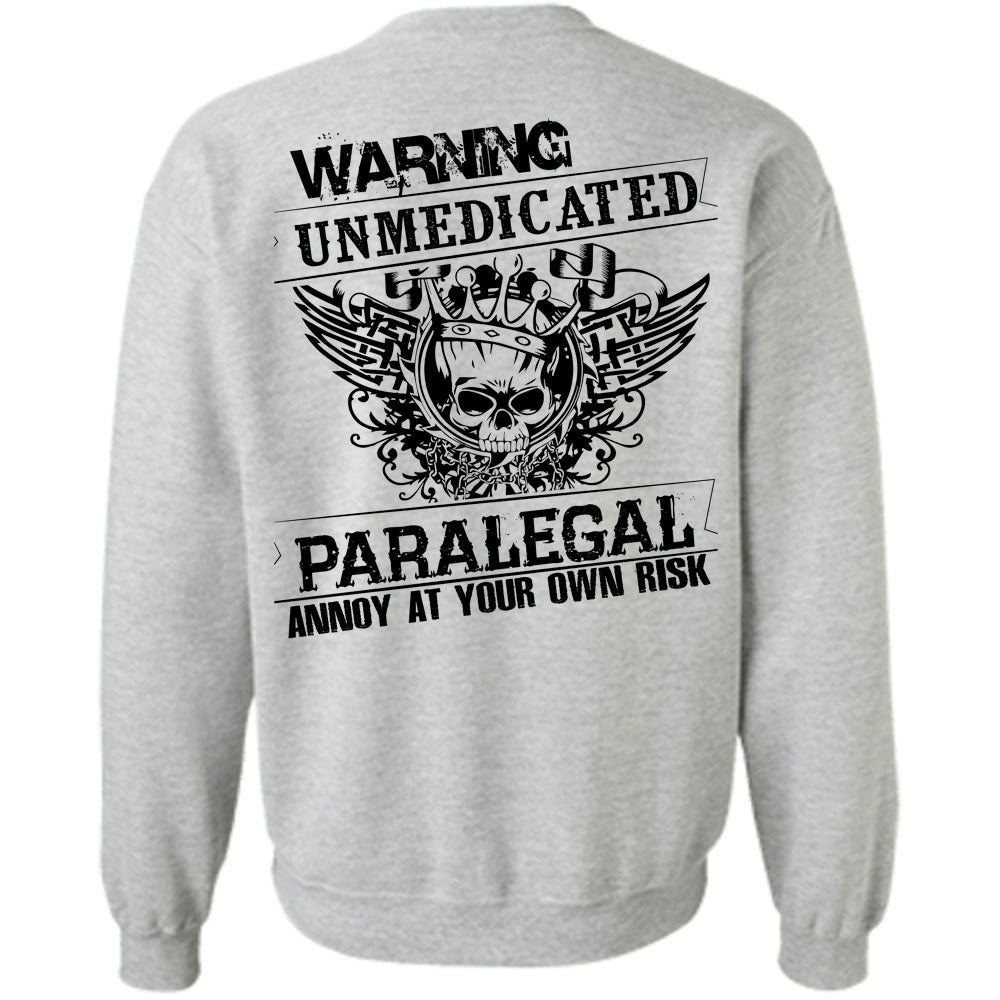 My Job T Shirt, Warning Unmedicated Paralegal Annoy Sweatshirt
