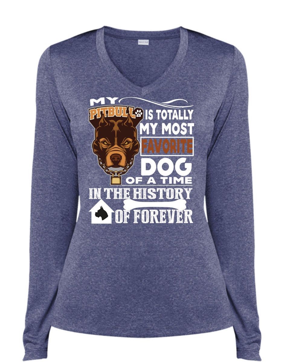 My Pit Bull Is Totally My Most Favorite Dog T Shirt, A Time In The History Of Forever T Shirt, Cool Shirt (Ladies LS Heather V-Neck)