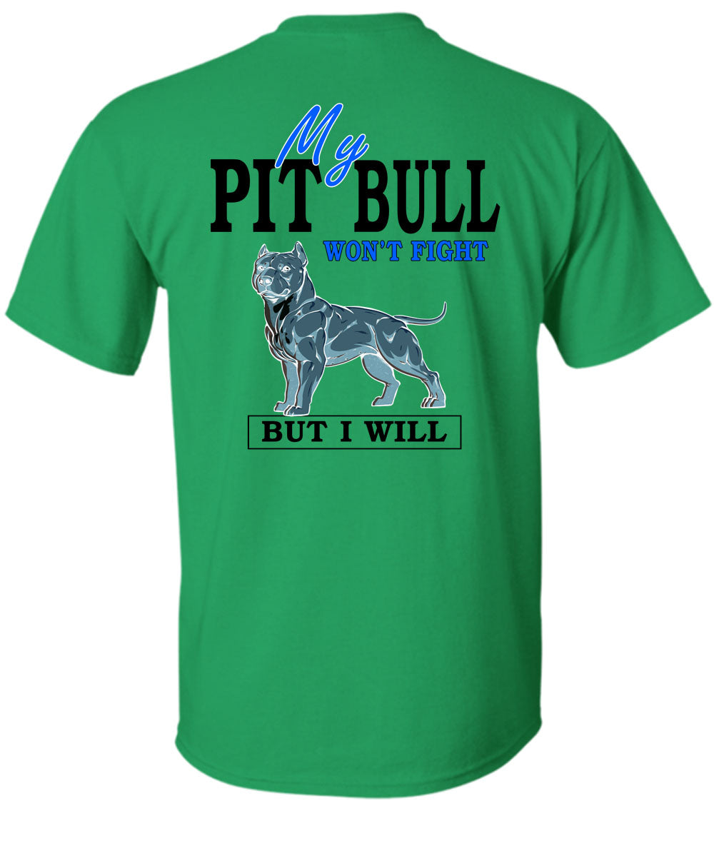 My Pit Bull Won't Fight T Shirt, I Love Dogs T Shirt