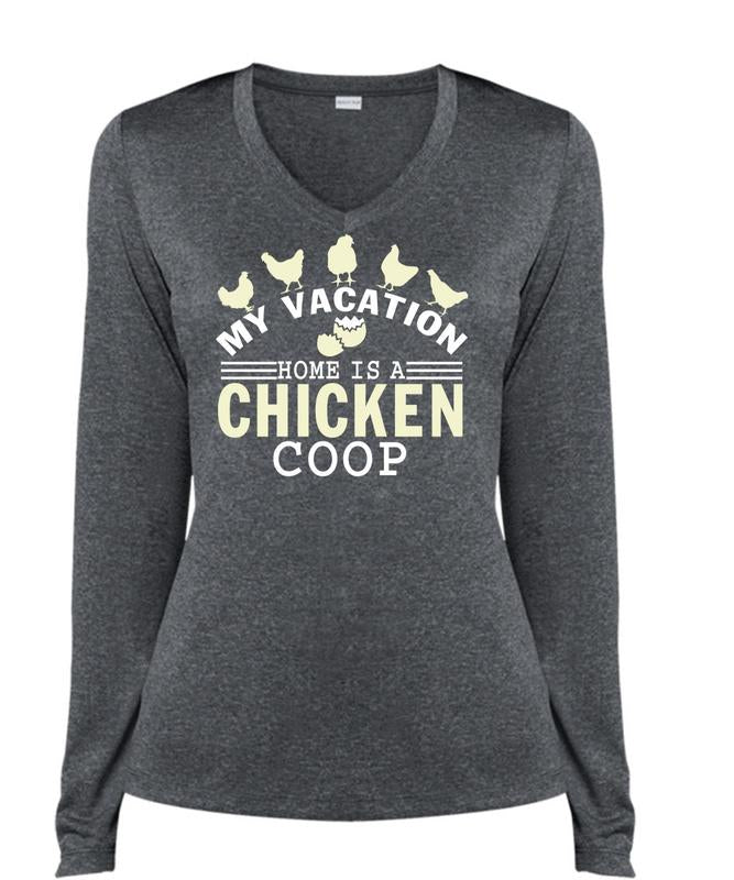 My Vacation Home Is A Chicken Coop T Shirt, My Favorite T Shirt, Cool Shirt (Ladies LS Heather V-Neck)