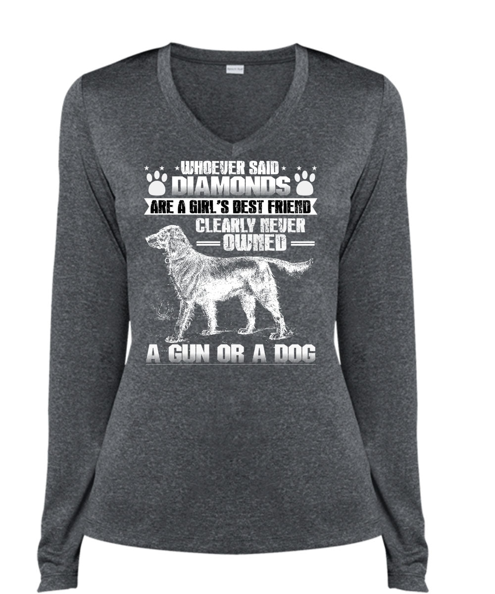 Never Owned A Gun Or A Dog T Shirt, Diamonds Are A Girl's Best Friend T Shirt, Cool Shirt (Ladies LS Heather V-Neck)