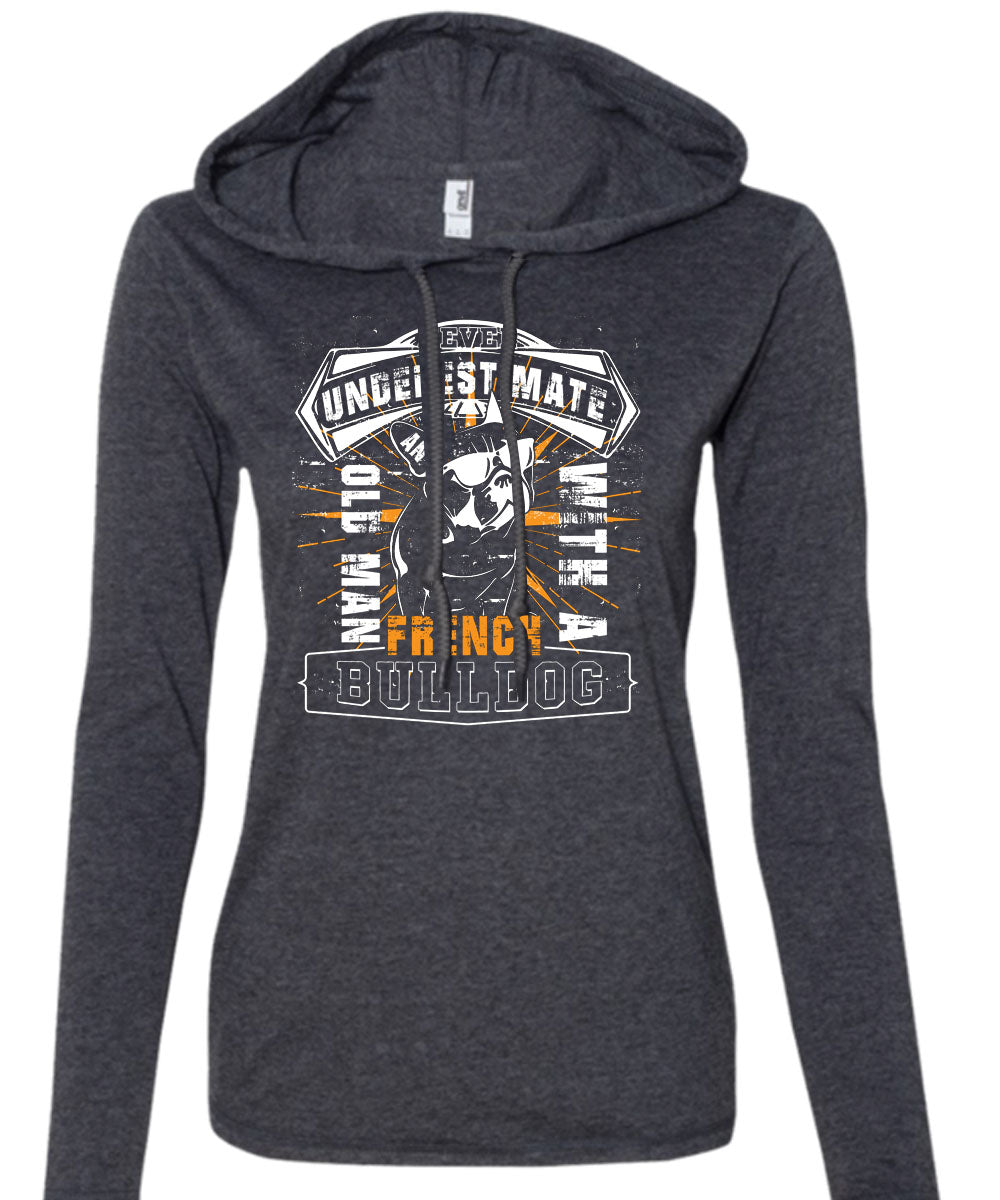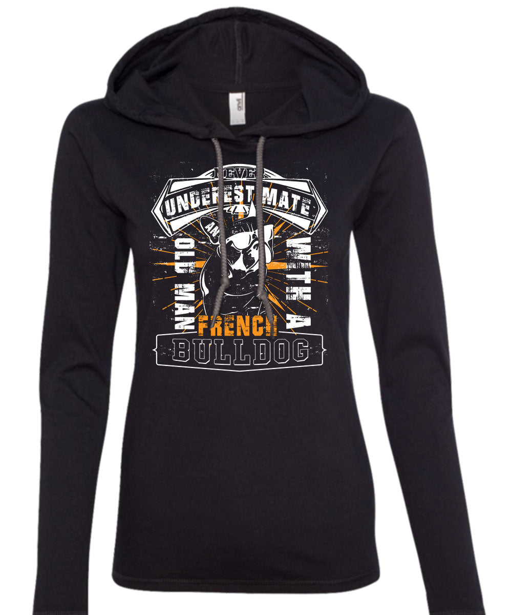 Never Underestimate An Old Man With A French Bulldog T Shirt, I Love My Dogs T Shirt (Anvil Ladies Ringspun Hooded)