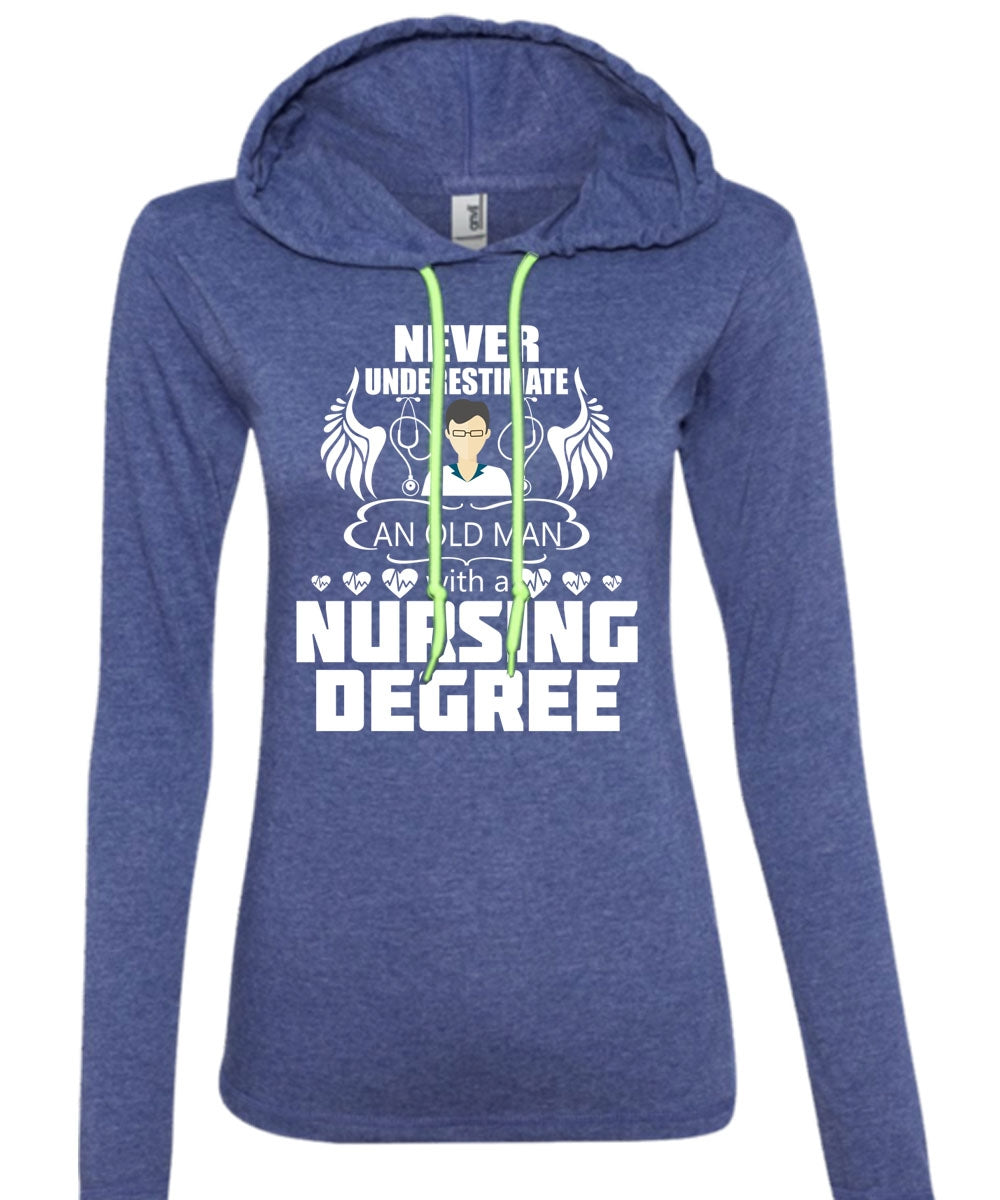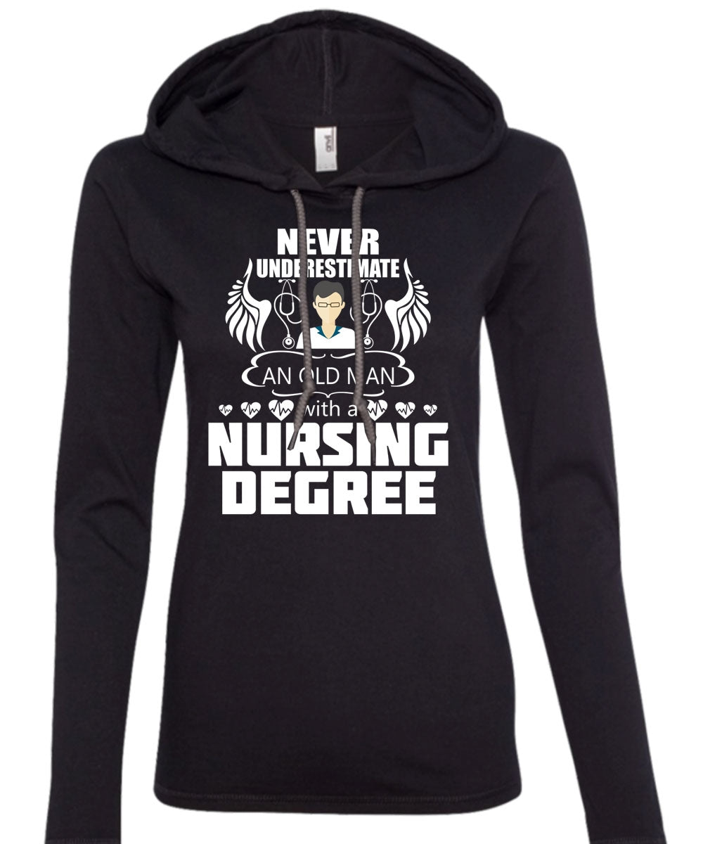 Never Underestimate An Old Man With A Nursing Degree T Shirt, Education T Shirt (Anvil Ladies Ringspun Hooded)