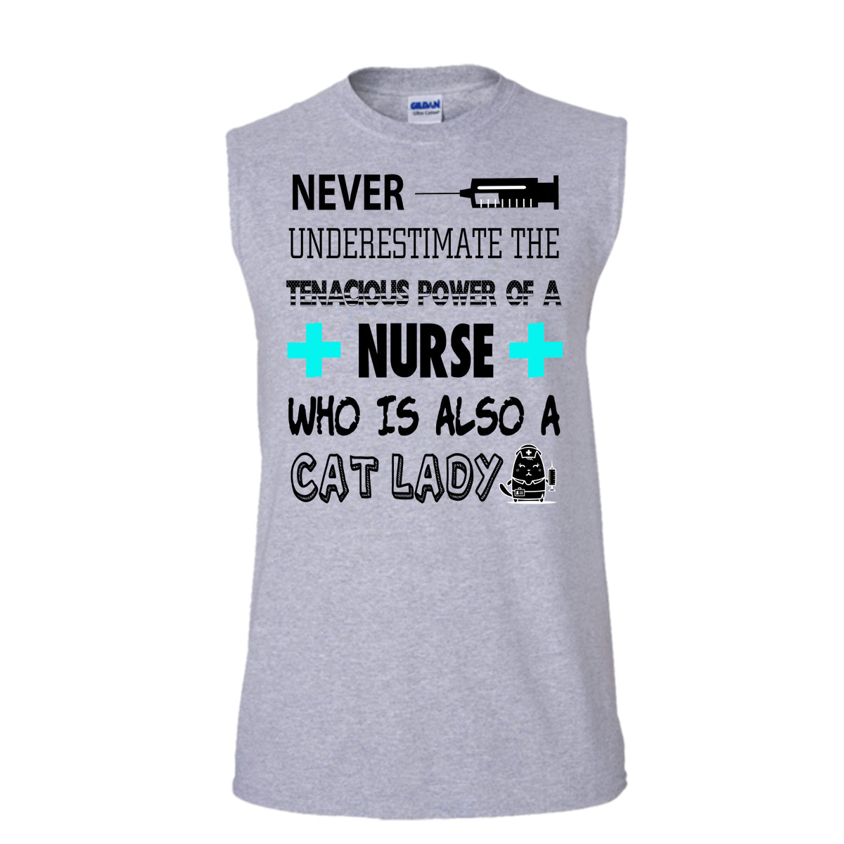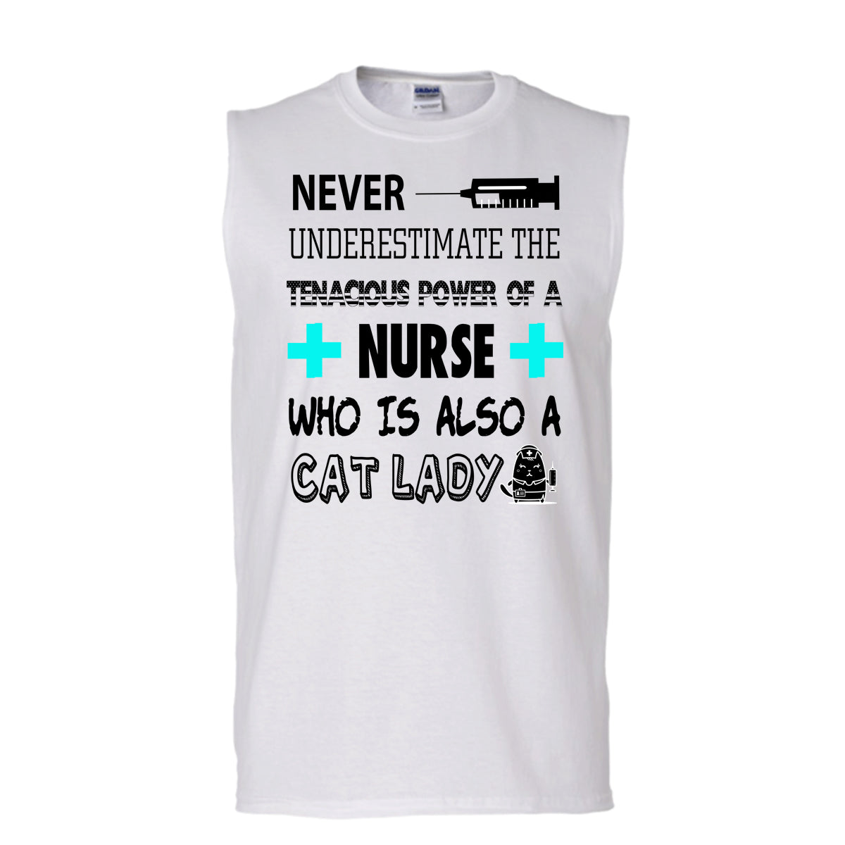 Never Underestimate T Shirt, Who Is Also A Cat Lady T Shirt, Awesome t-shirts (Men's Cotton Sleeveless)