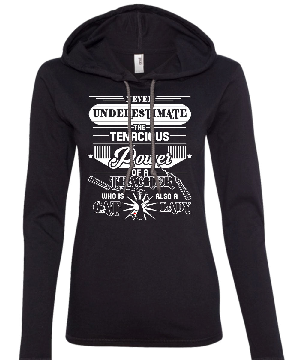 Never Underestimate The Tenacious Of A Teacher T Shirt, Being A Cat Lady T Shirt (Anvil Ladies Ringspun Hooded)